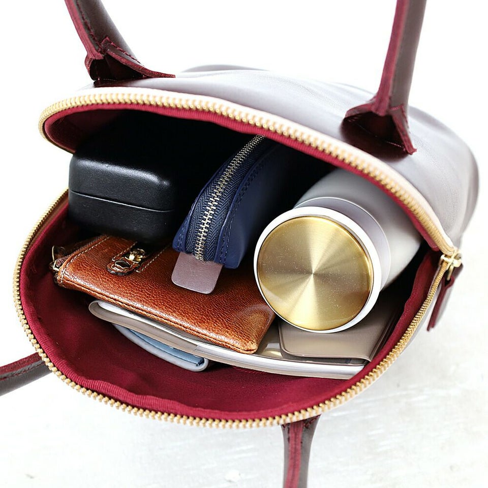 ジッパーを端まで開ければ、がばっと口が広がり、荷物の出し入れも楽々です。