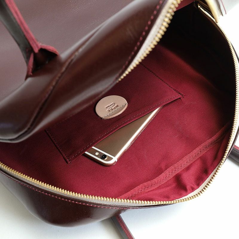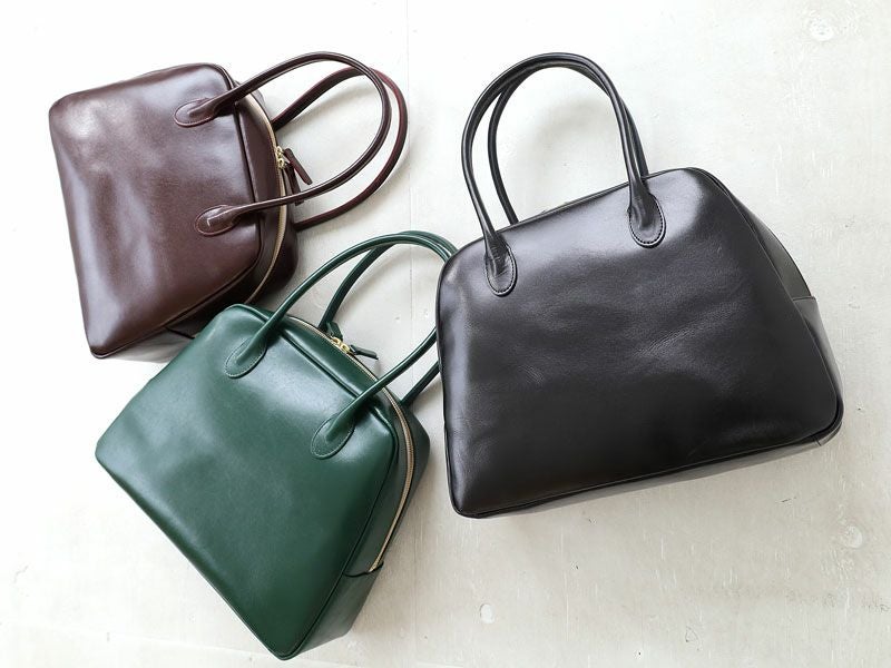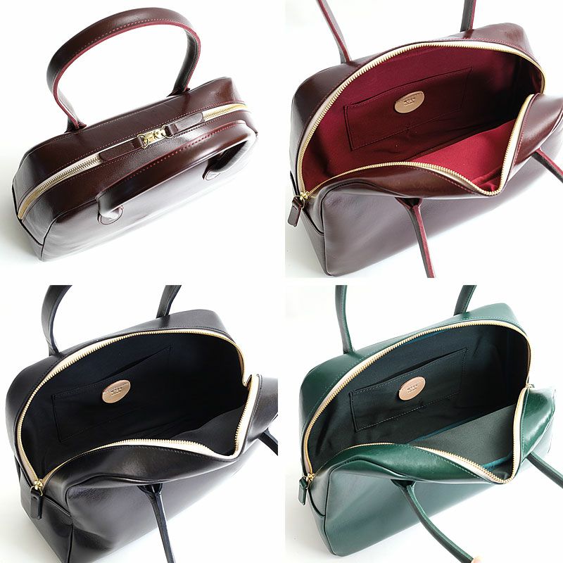 日本製の本牛側を使用した、高級感あるボストンバッグ。