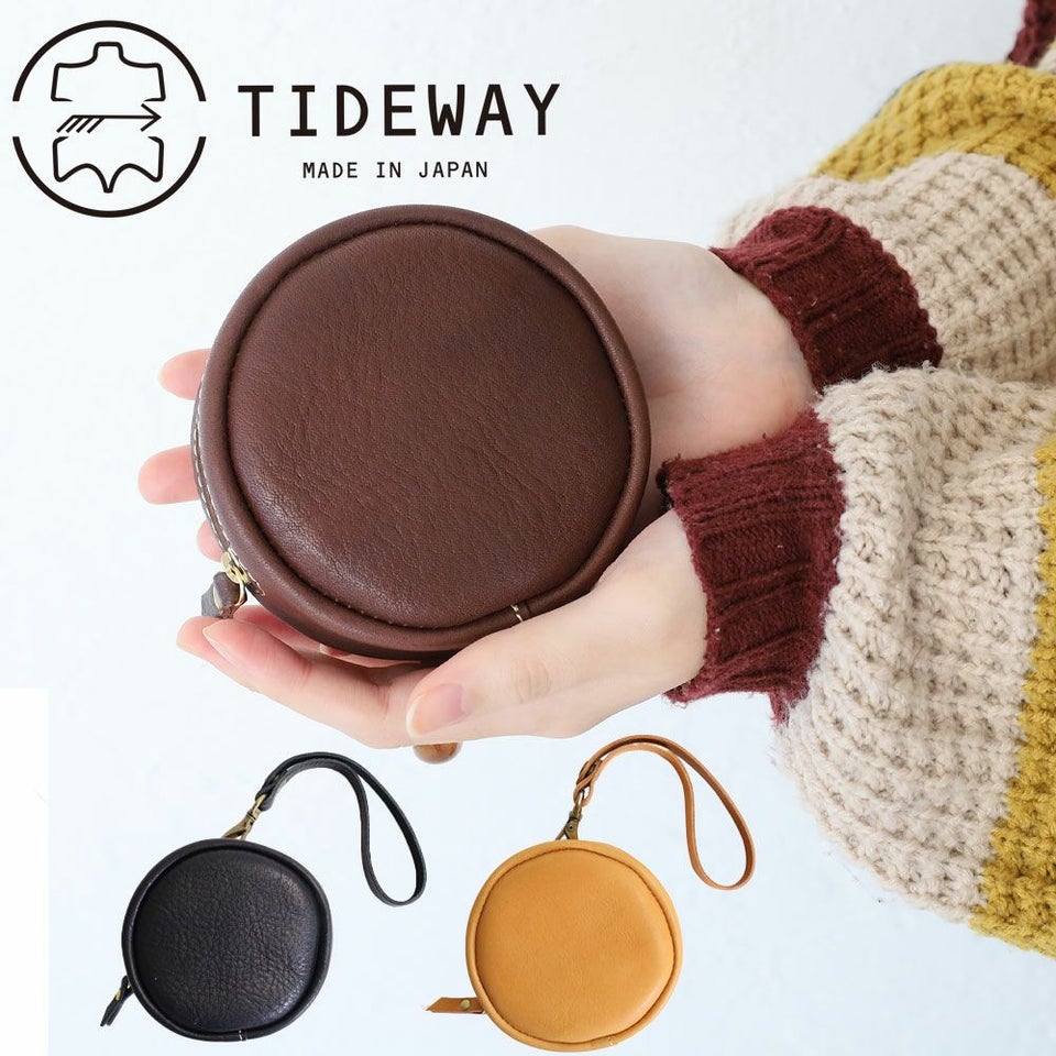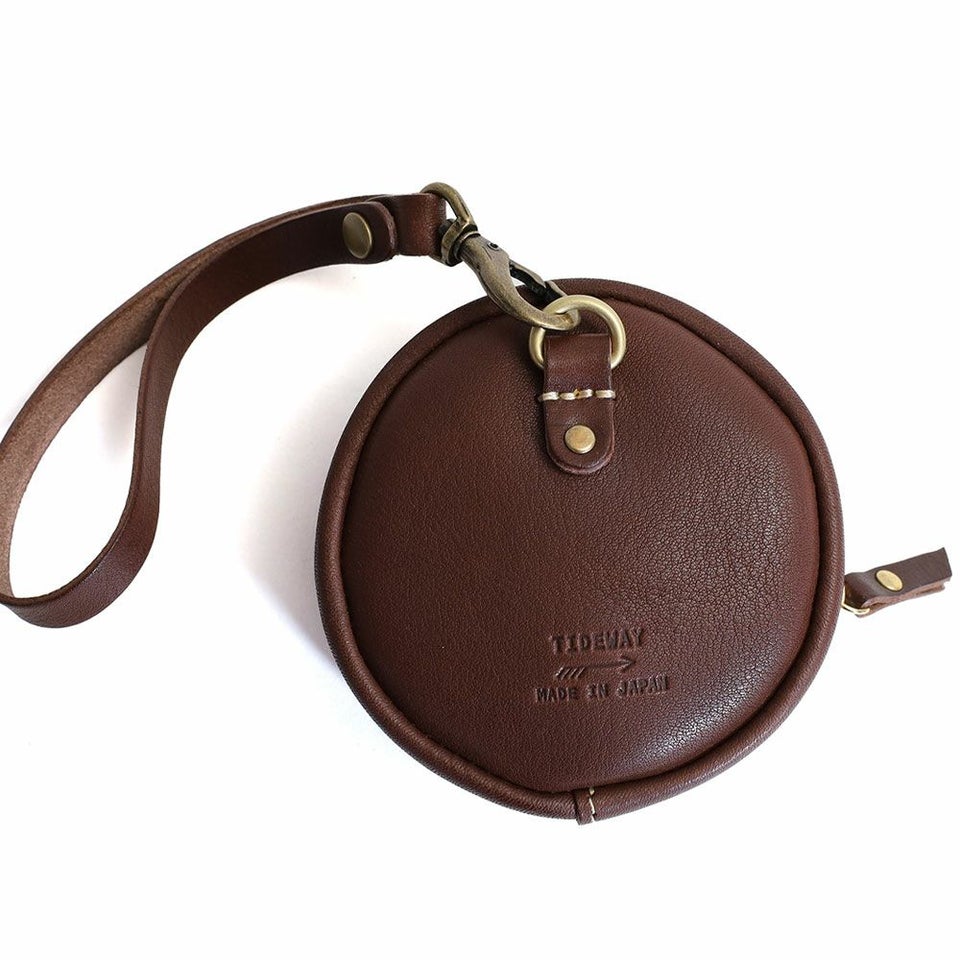 TIDEWAY 日本製の本牛革を使用した、丸型ポーチ 送料無料