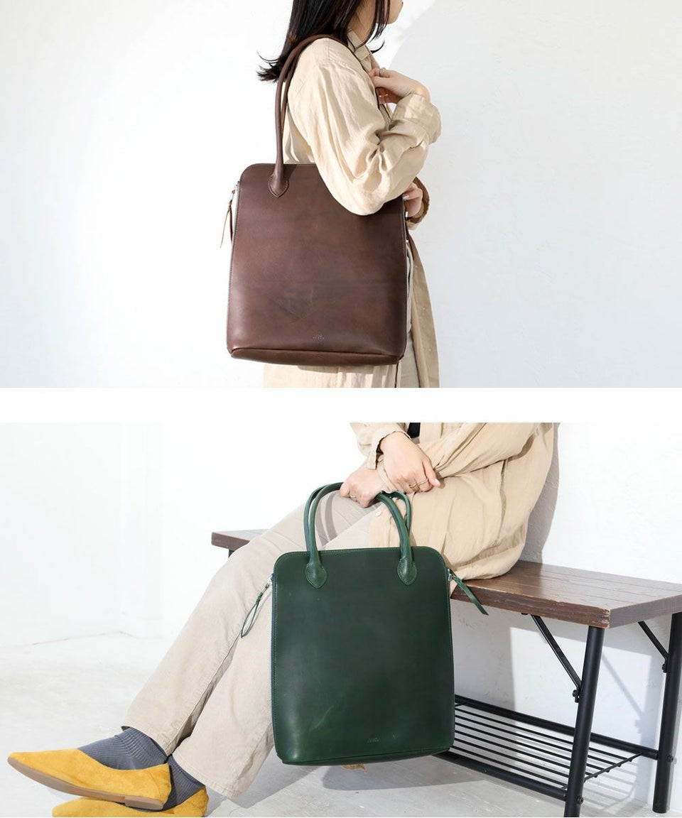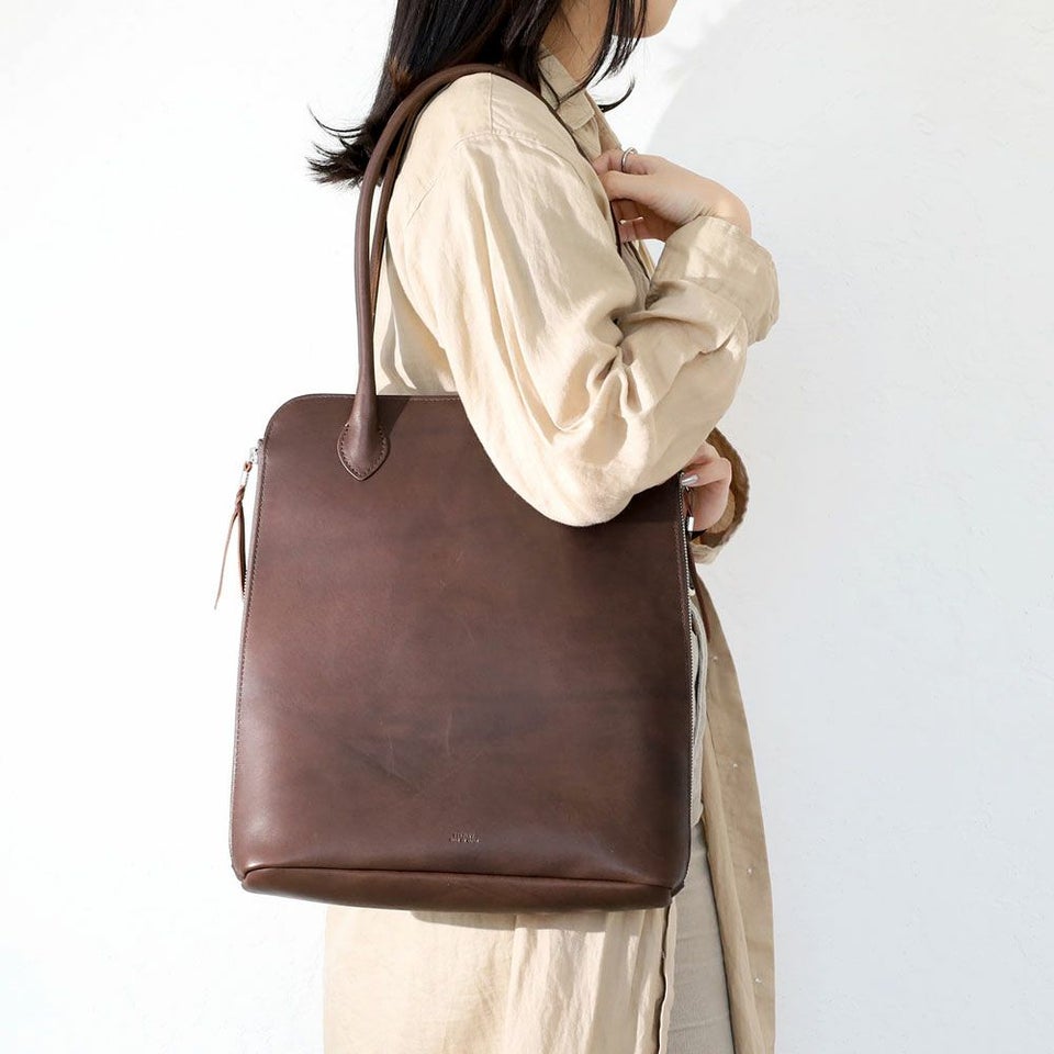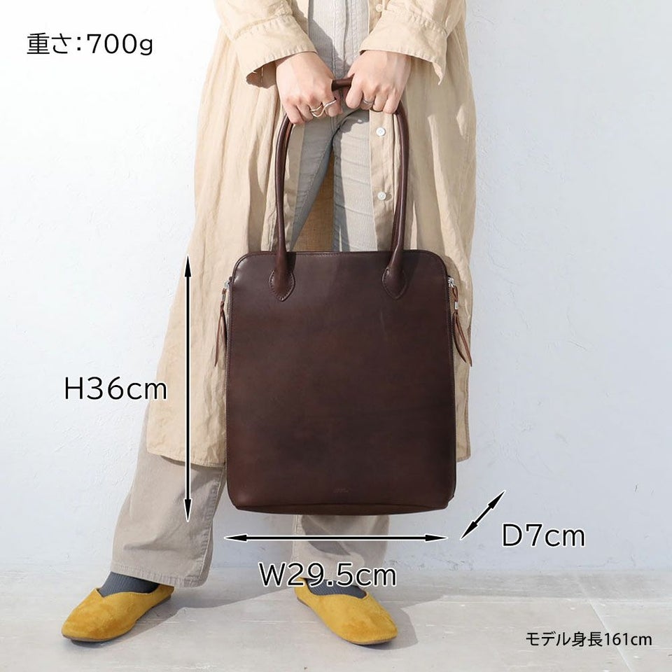 TIDEWAY A4サイズ収納可能 上品なツヤと深みのオリジナルレザー 多収納ポケット付き 縦長トートバッグ 日本製 本革 送料無料