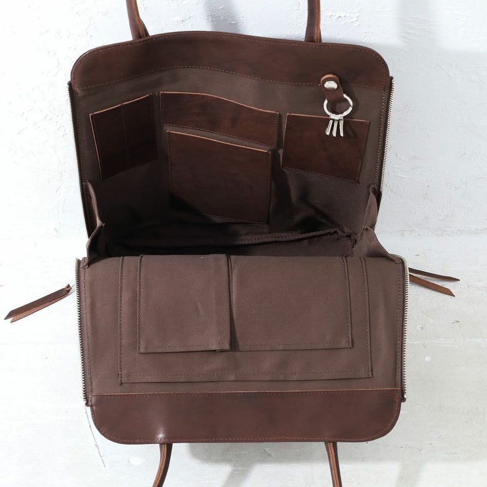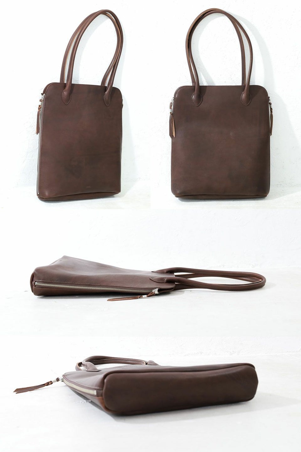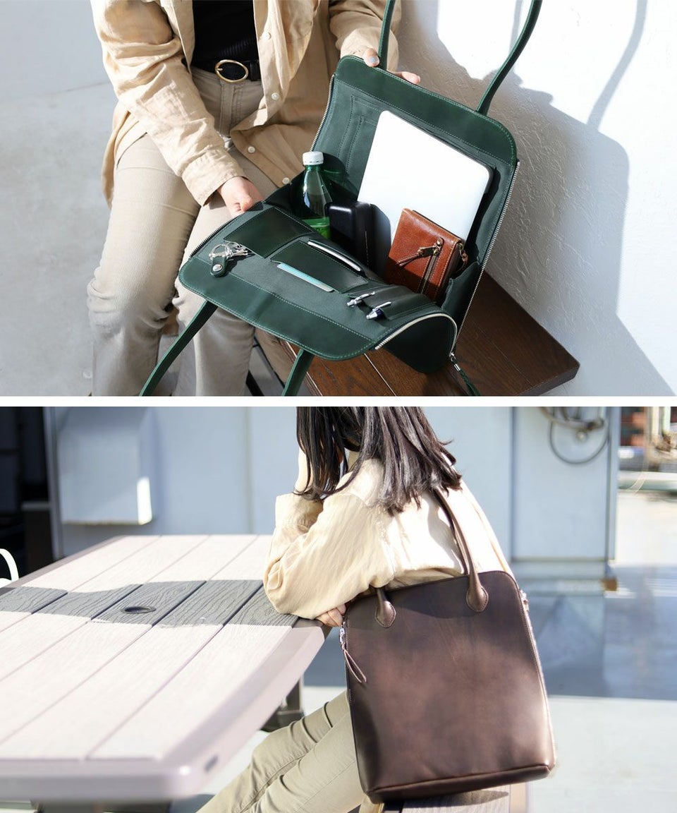 TIDEWAY A4サイズ収納可能 上品なツヤと深みのオリジナルレザー 多収納ポケット付き 縦長トートバッグ 日本製 本革 送料無料