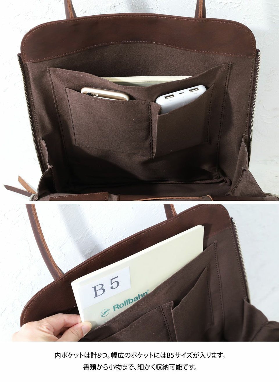 内ポケットは計8つ。書類から小物まで、細かく収納可能です。