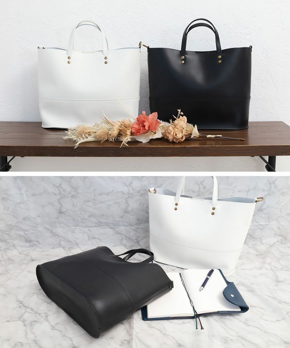 本革仕様でありながらとても軽く、見た目もライトな気軽に使えるトートバッグ。