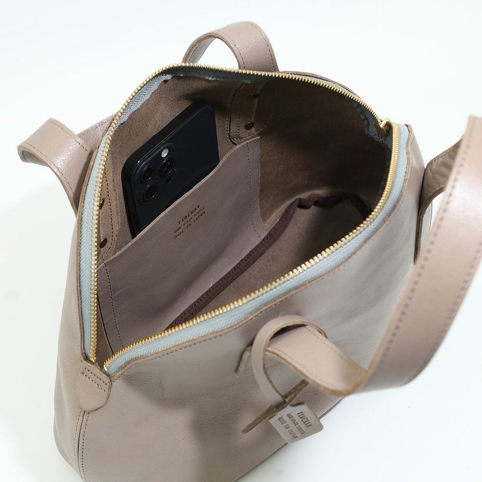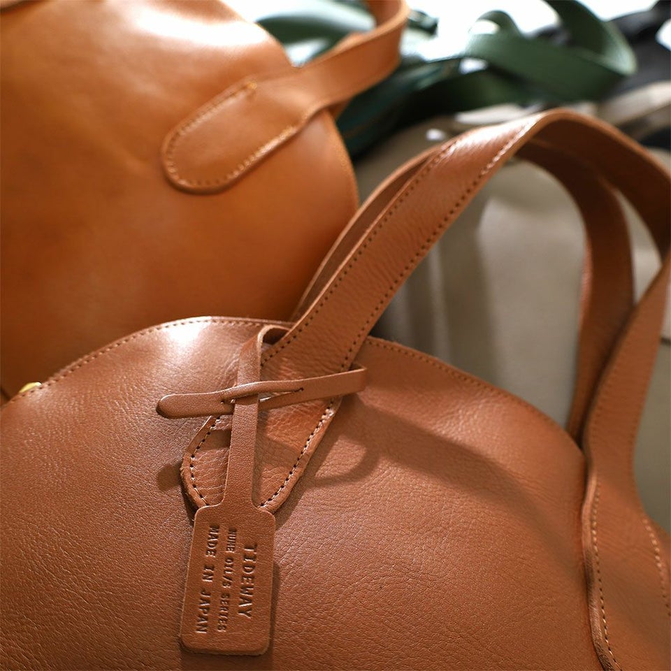 合成タンニンで鞣し、オイルを丁寧に染み込ませたレザーを使用。上品な艶と細かなシボの表情が大人の落ち着きを演出します。