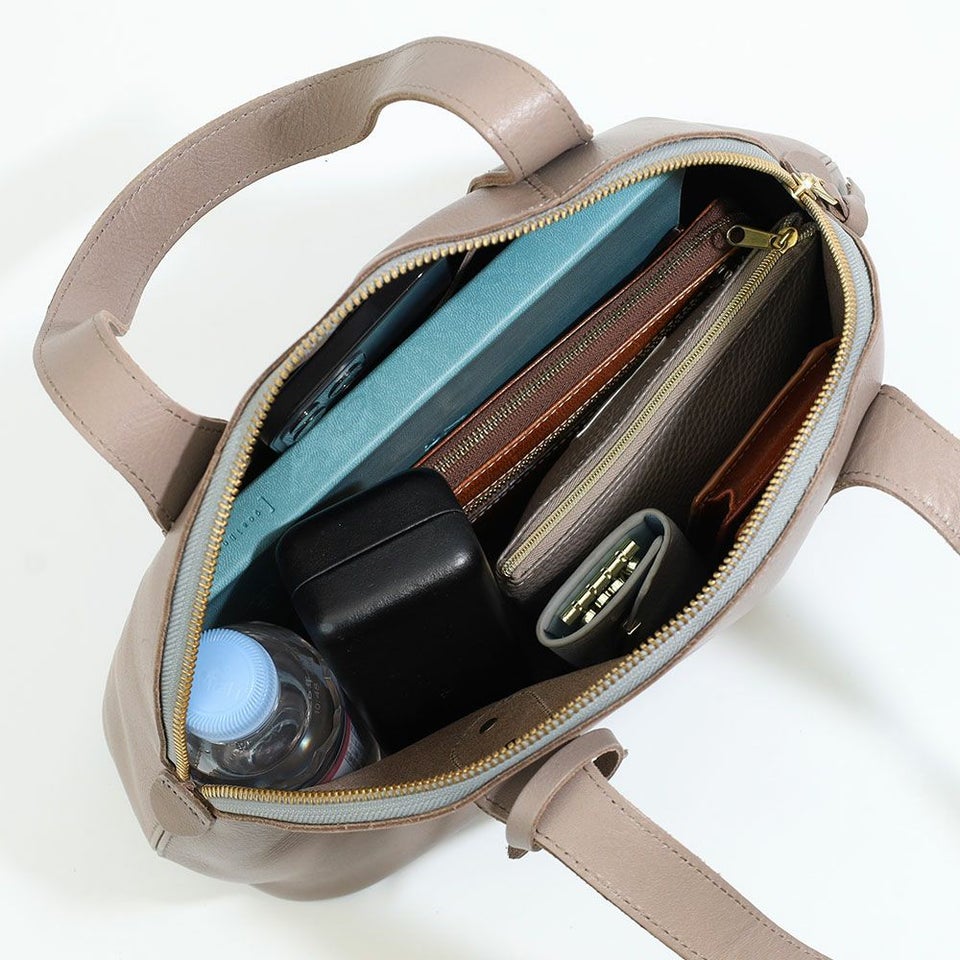 大きく開くファスナー仕様で、中身がひと目で確認しやすく出し入れもスムーズ。内側には小物をすっきり収納できるポケットを配置。