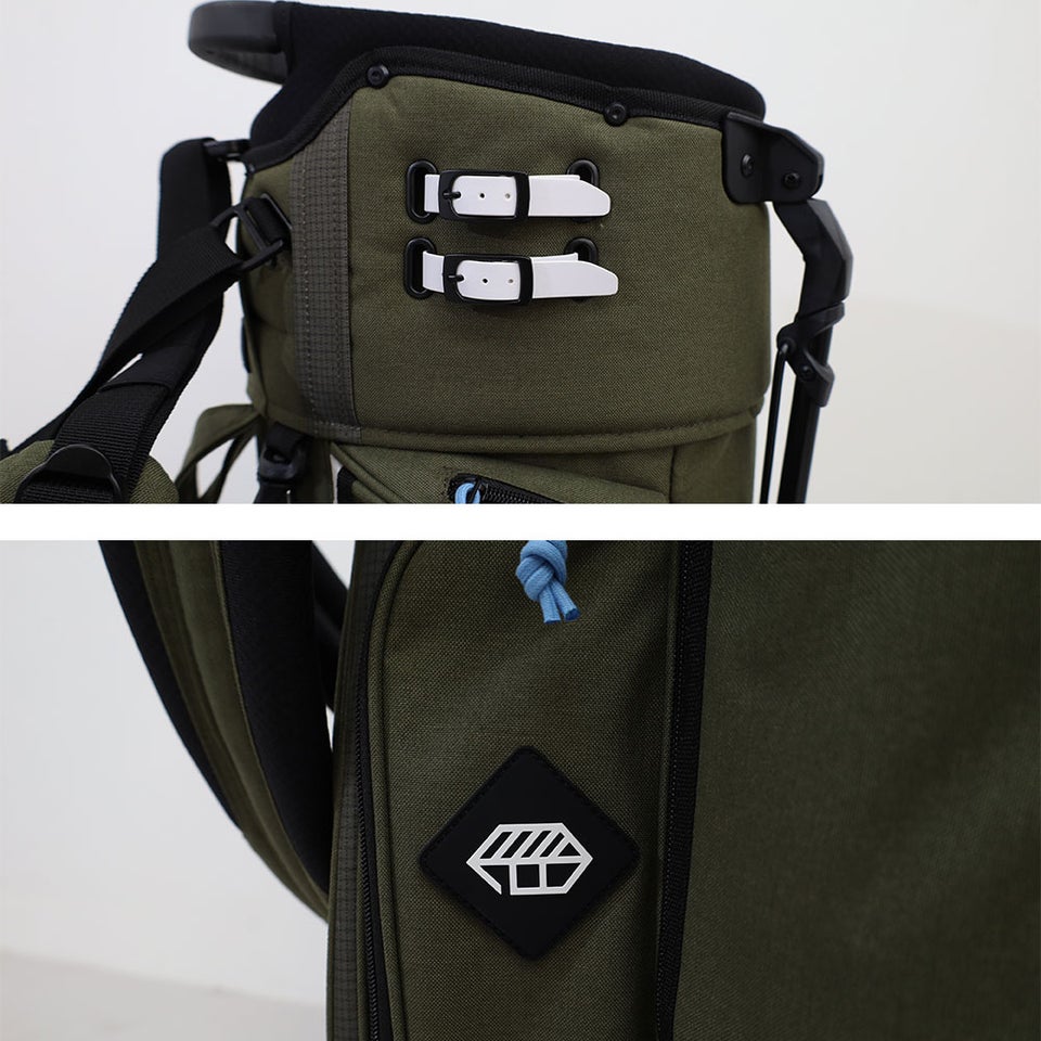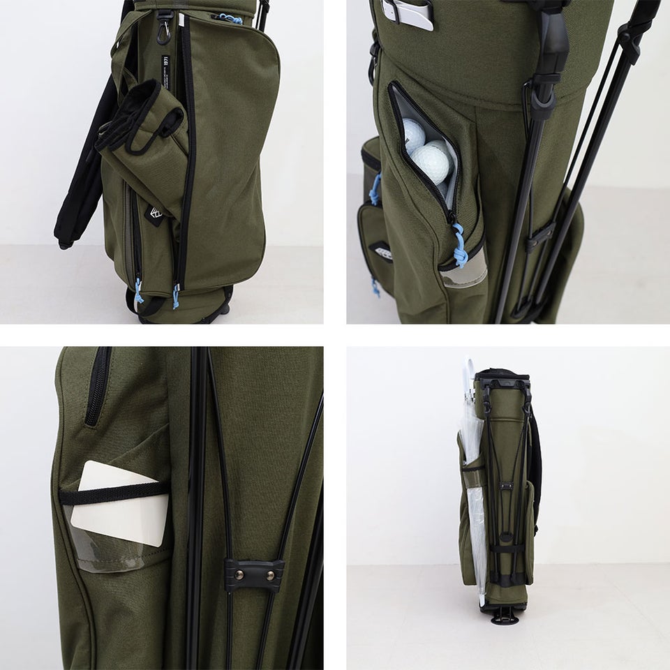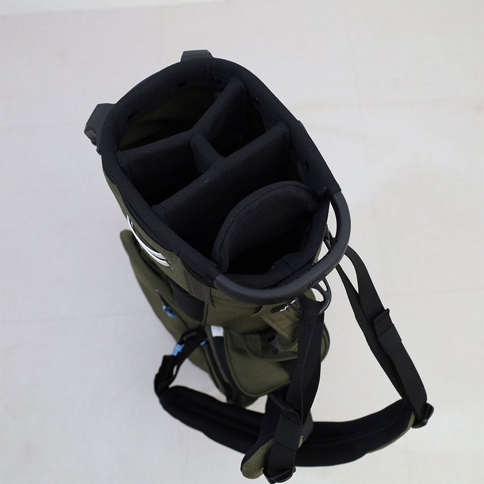 サイズは横7インチ×9インチの楕円形設計。コンパクトながらクラブをしっかり収納できるバランスの良いサイズ感です。スタンドバッグとして扱いやすく、セルフプレーや練習ラウンドなど幅広いシーンで活躍する実用的な設計となっています。