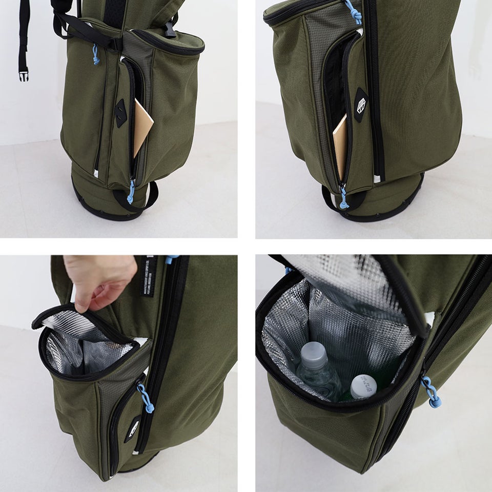 重さは約2.8kgと軽量に仕上げており、持ち運びやすさが魅力です。コース内の移動やクラブハウスまでの移動もスムーズで、体への負担を軽減します。軽さと実用性を両立した設計で、アクティブにプレーしたいゴルファーに適したキャディバッグです。