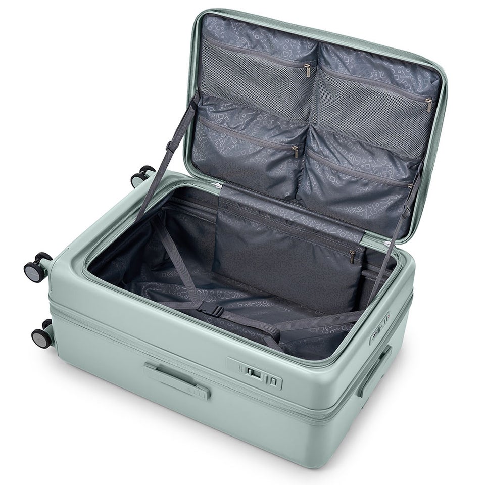 通常時約101L、エキスパンダブル機能を使えば最大約116Lまで容量アップ。行きは余裕を持って、帰りはお土産や衣類が増えても安心。1週間以上の長期滞在や海外旅行にも対応できる頼れる収納力です。