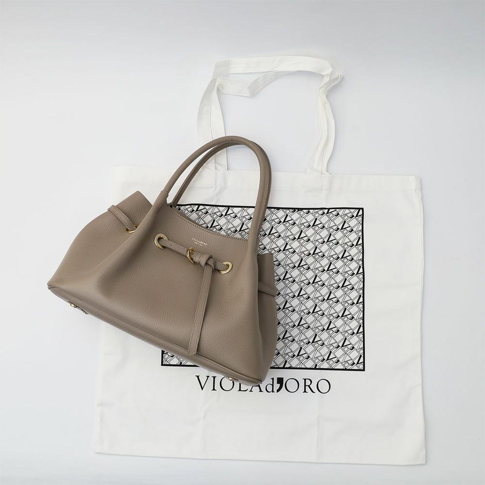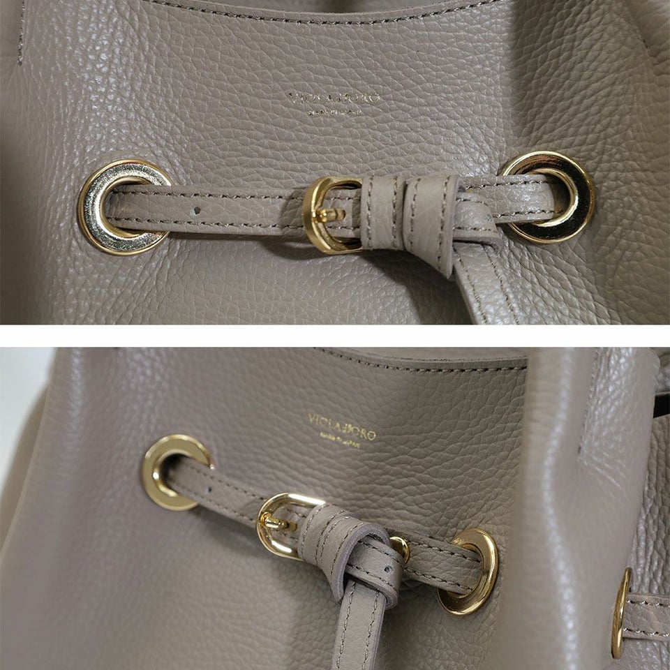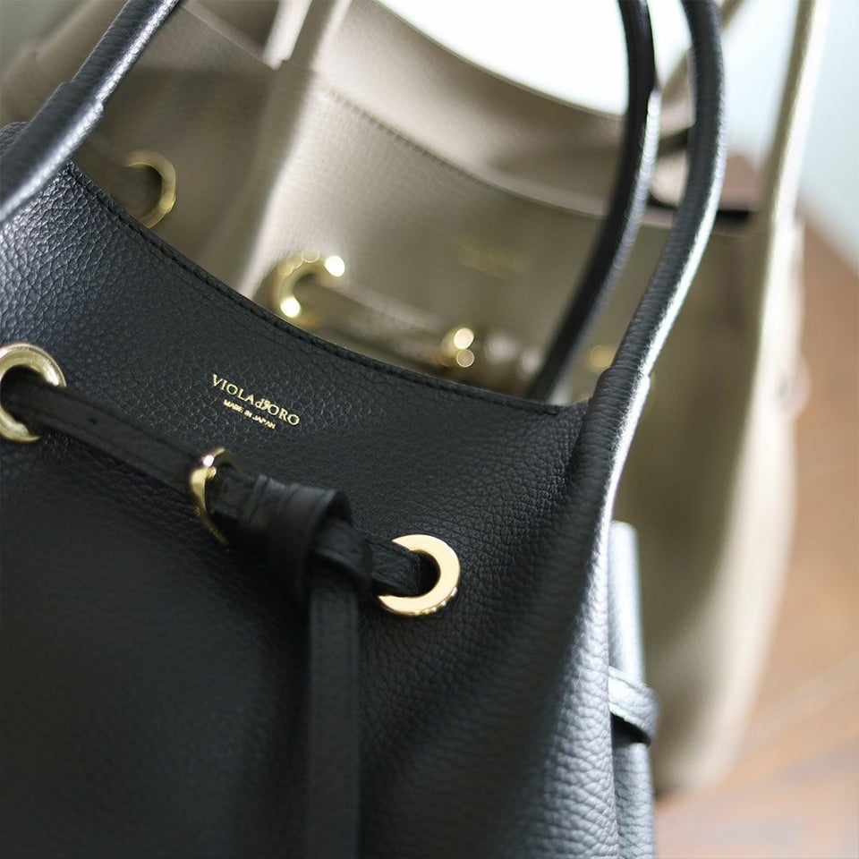 しなやかで傷が付きにくいシボ型押しのダブルフェイスレザーを使用し、上質さと扱いやすさを両立しています。ソフトな質感と軽さが魅力で、日常の動きに自然になじむ柔らかな仕上がりです。長く使うほど愛着が増し、VIOLAdOROらしい品の良さを日々感じられる素材です。
