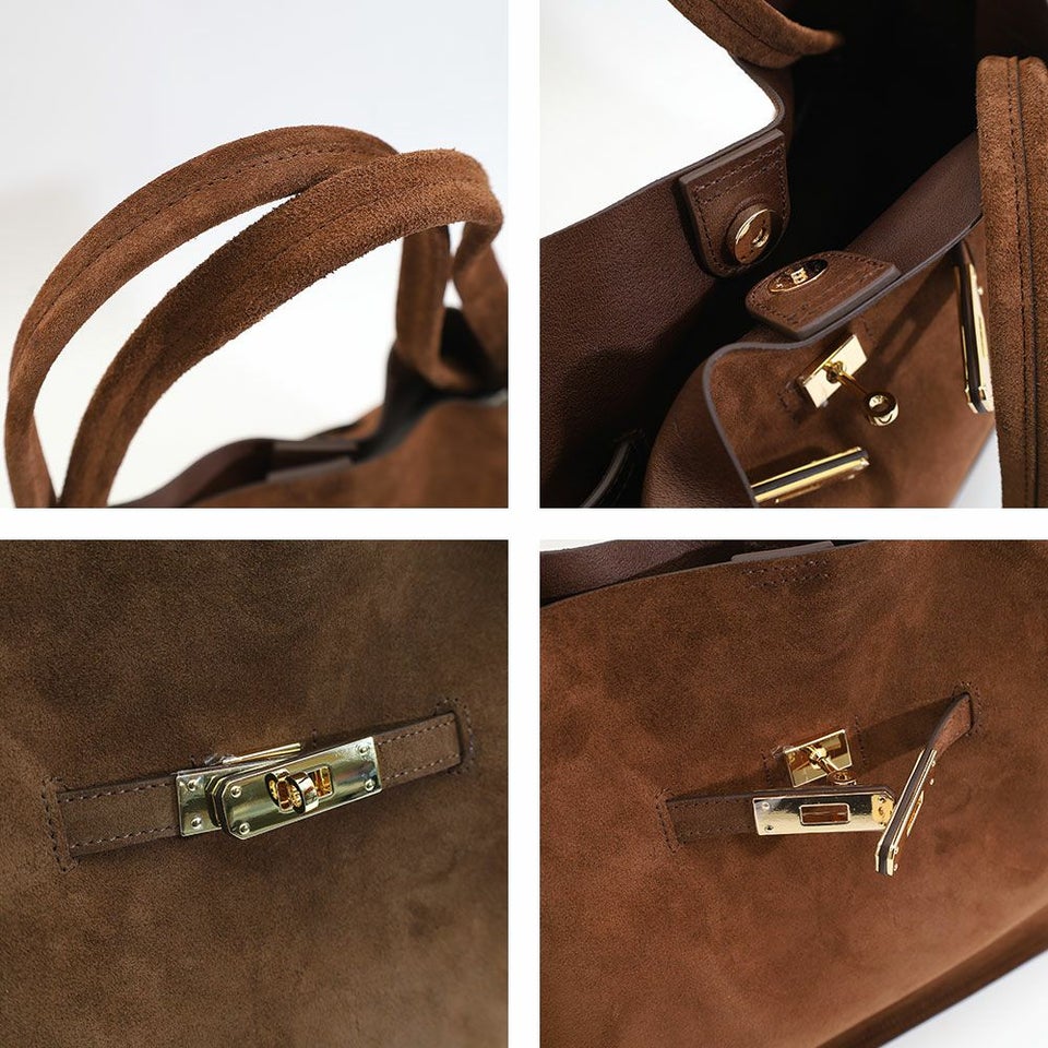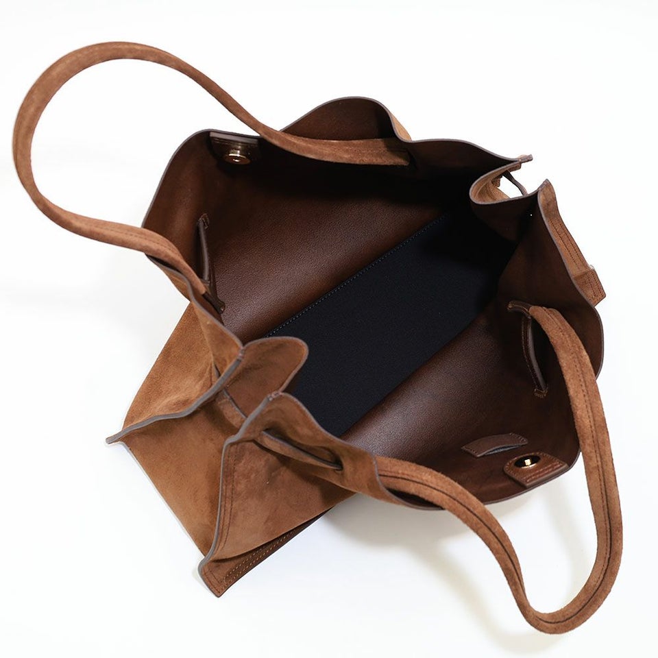 スエード特有の温かみと陰影が秋冬の装いに自然に溶け込み、コーディネートに季節らしさをプラスします。落ち着いたカラー展開で大人の日常に合わせやすく、普段使いはもちろん特別なシーンでも活躍。素材そのものの存在感でシンプルな服装も華やかに見せてくれます。