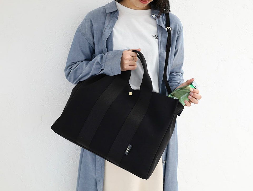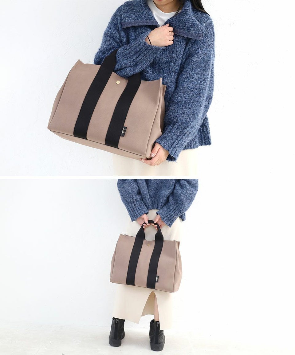シンプルでモダンな雰囲気のあるベーシックなデザインのトートバッグ。