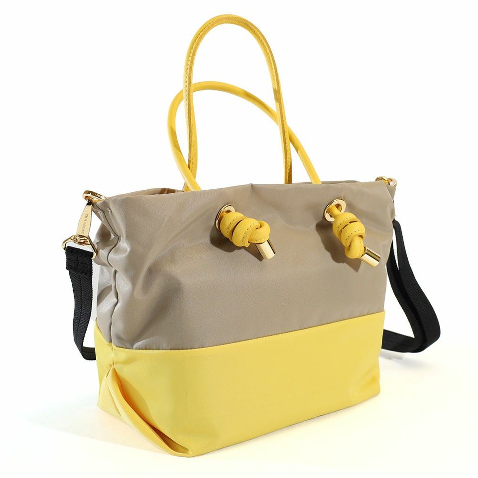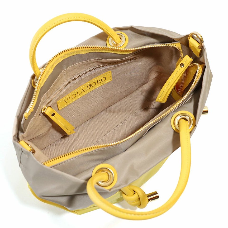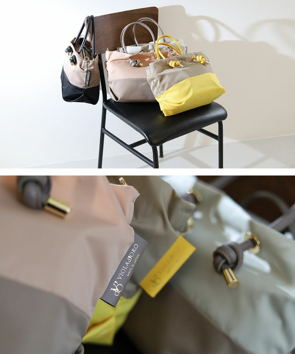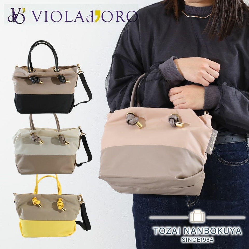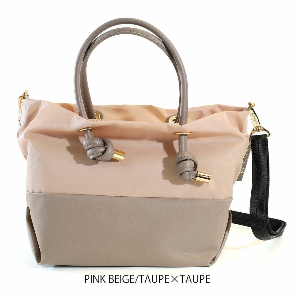 VIOLA d'ORO ヴィオラドーロ バイカラーのナイロンボディにノットハンドルがアクセントになったトートバッグのSサイズ。