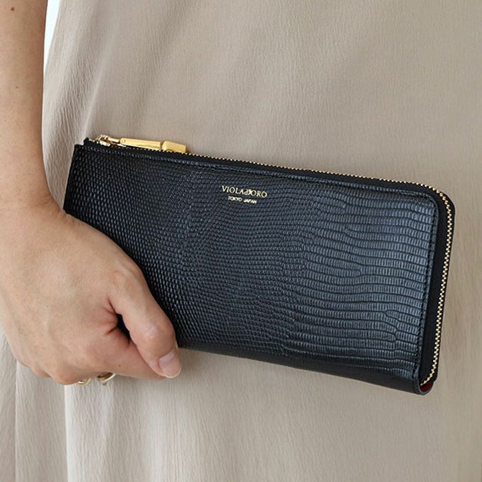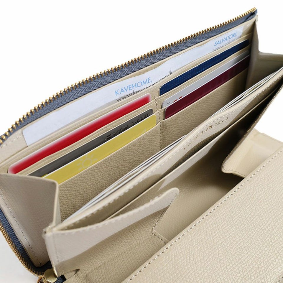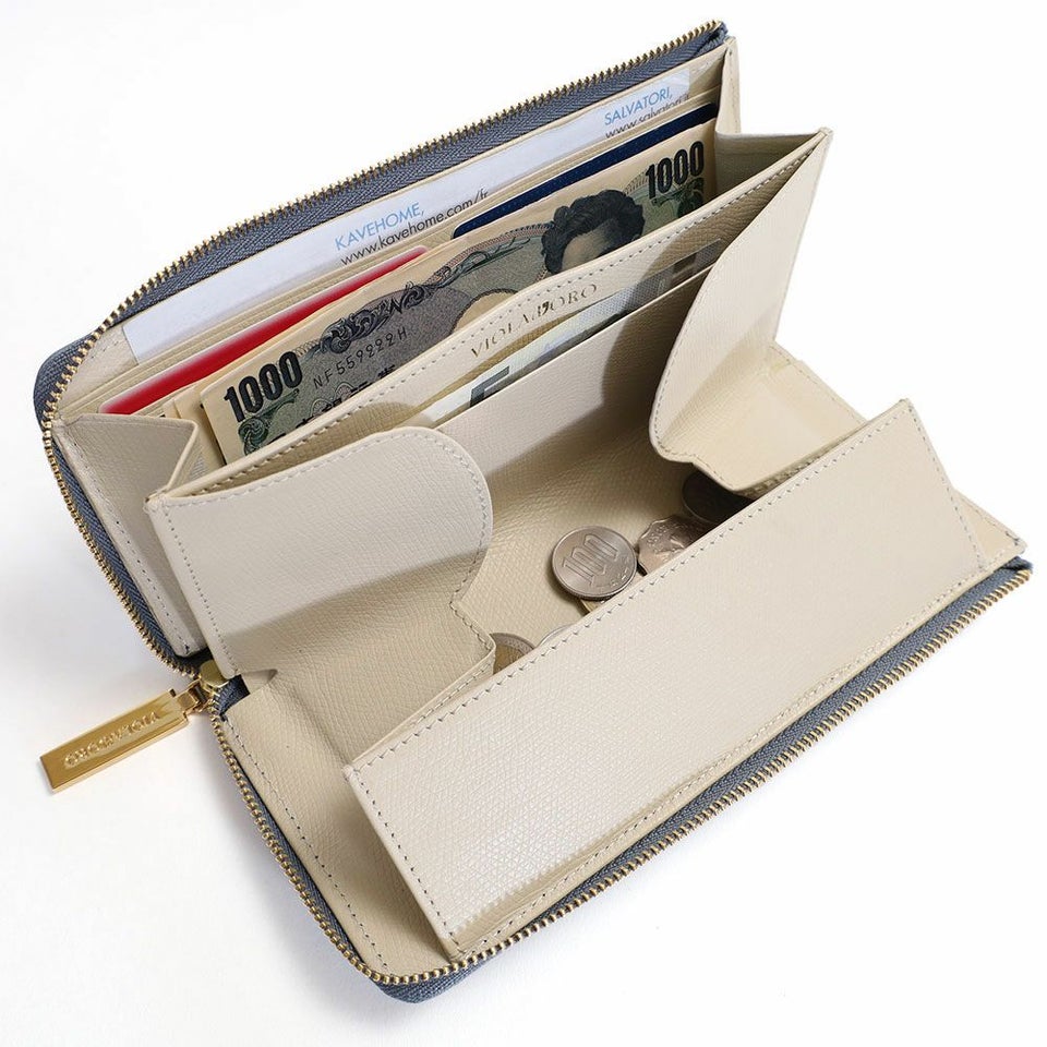 L字ファスナーで大きく開き、中身が一目でわかる便利さ。小銭入れもしっかり開くので、出し入れがスムーズで安心です。