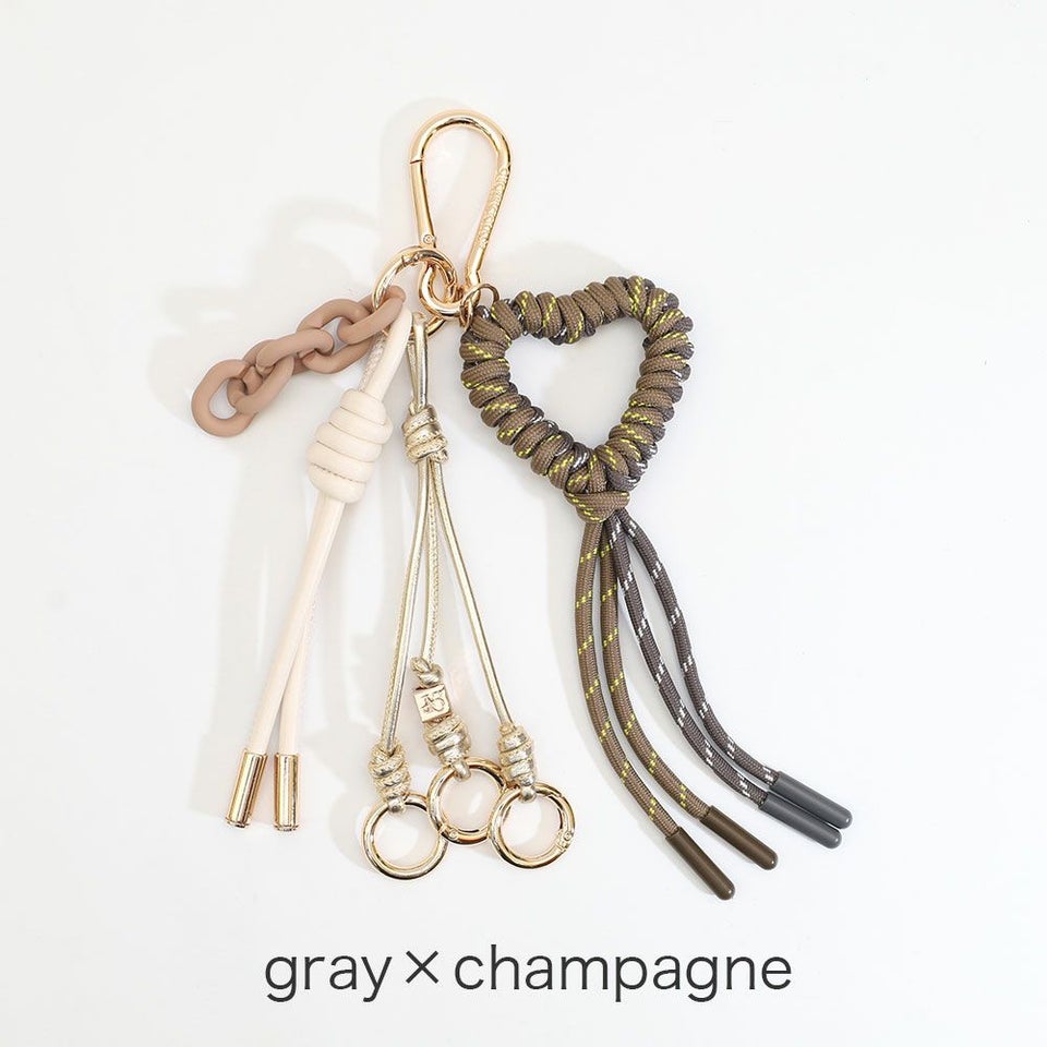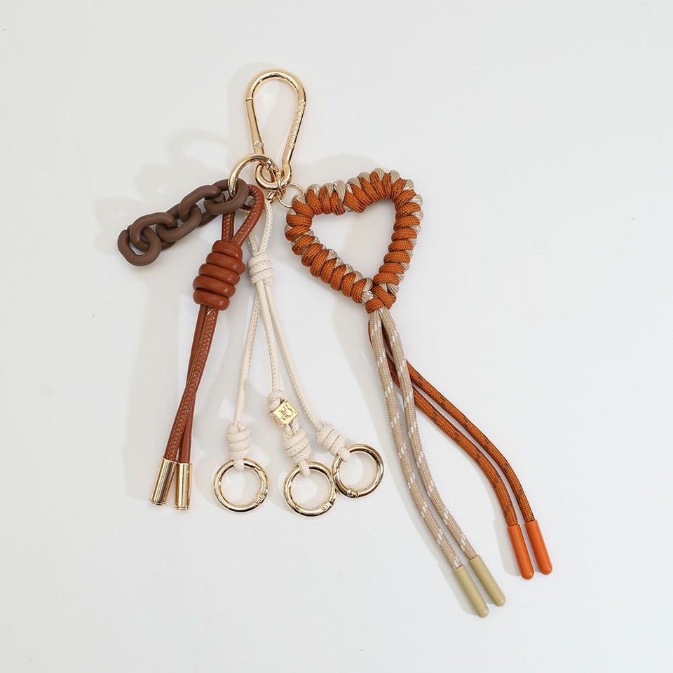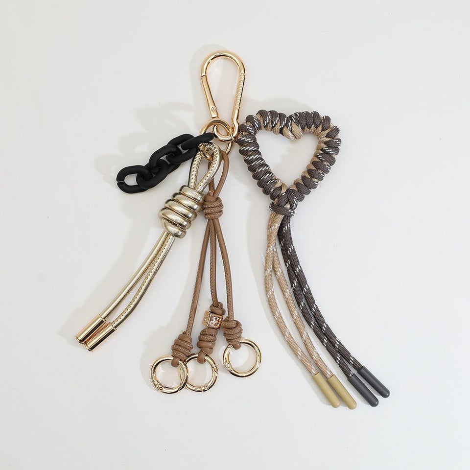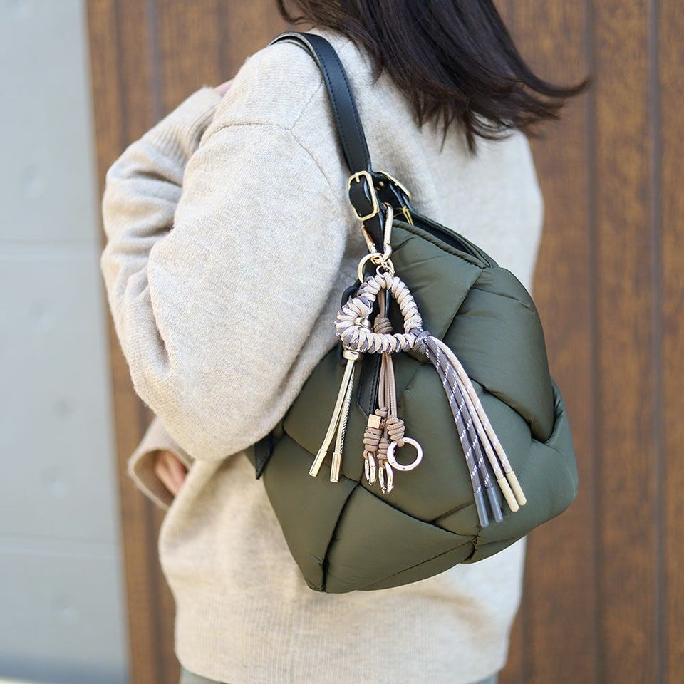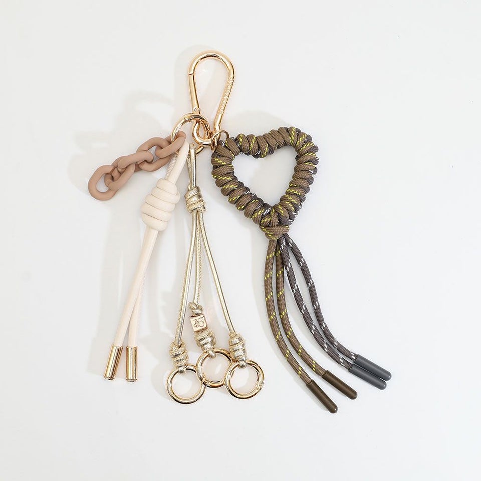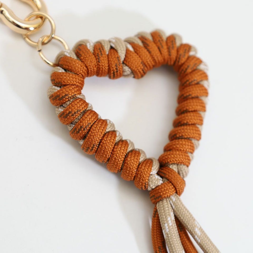 立体感のあるパラコードのハートモチーフが、バッグに程よい可愛らしさをプラス。甘くなりすぎない素材感とフォルムで、カジュアルからきれいめまで幅広いスタイリングに自然に馴染みます。
