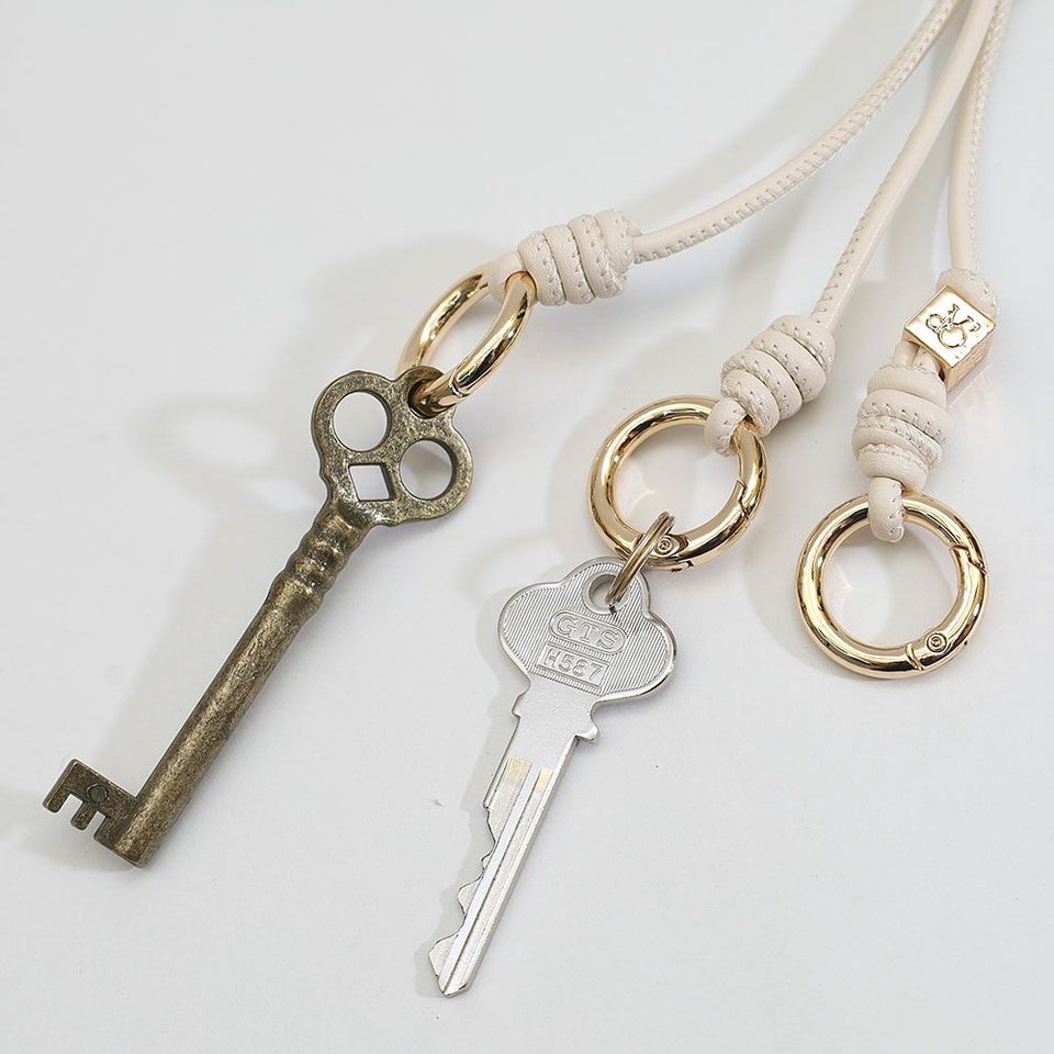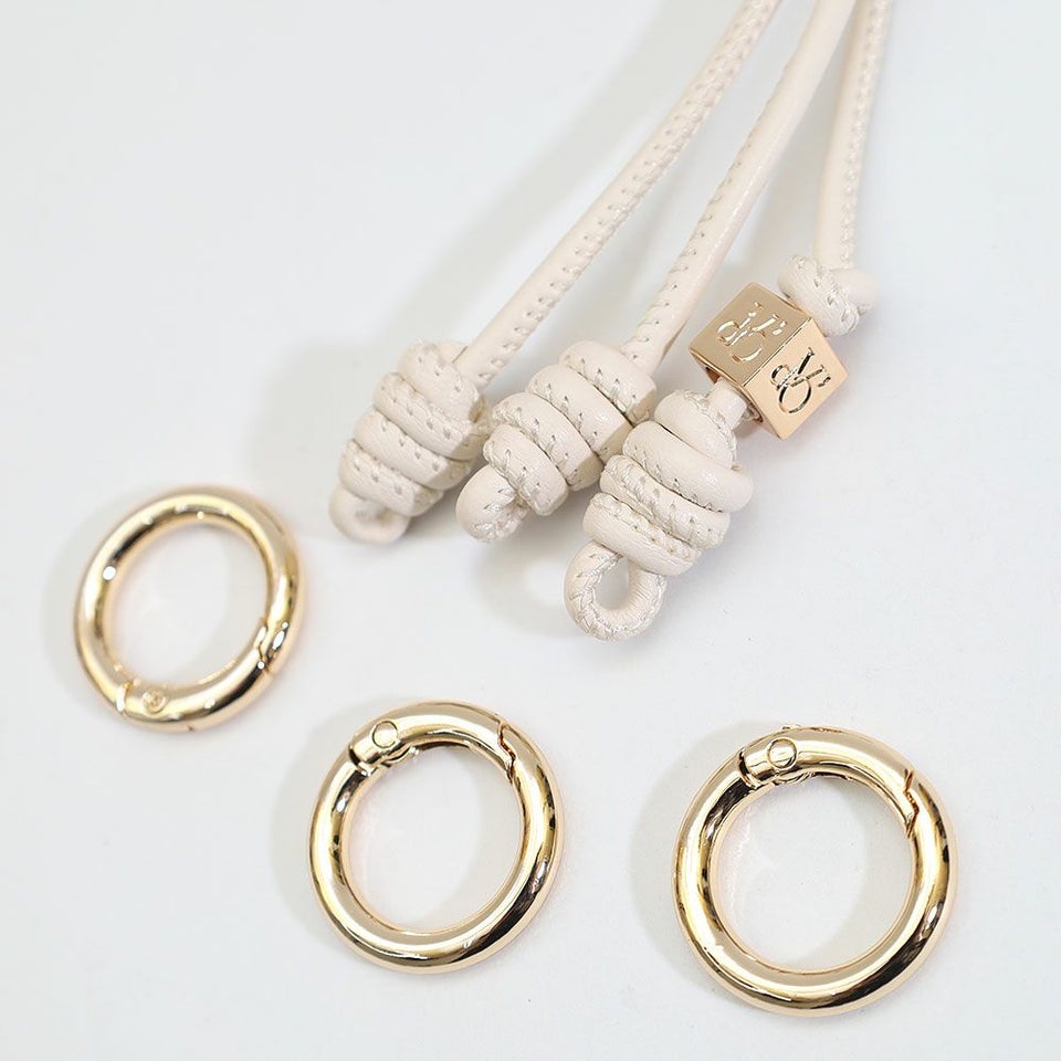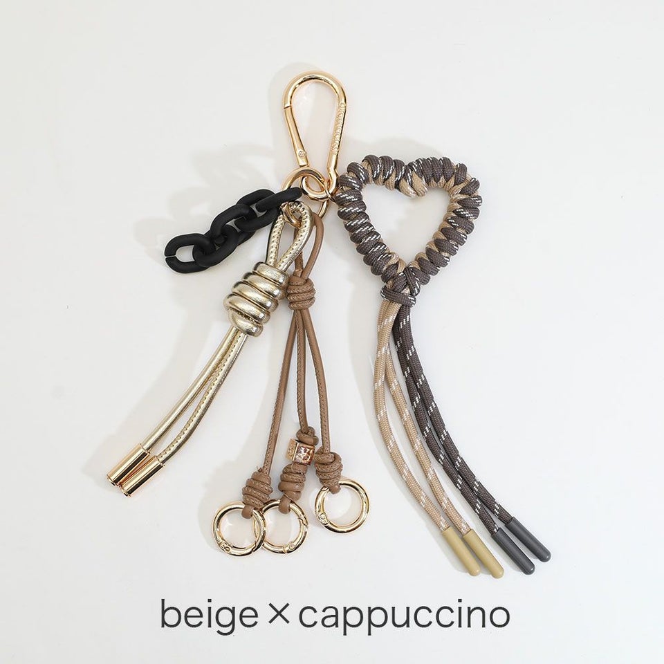 アクリルチェーン、パラコード、PU素材、金属パーツをバランスよくミックス。それぞれの質感が引き立ち、軽やかさと上品さを兼ね備えたデザインに仕上がっています。