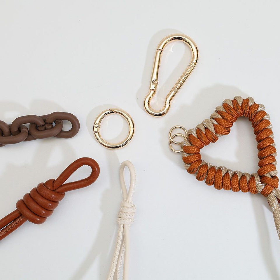 カラビナ付きで、バッグのハンドルや金具にスムーズに装着可能。付け替えも簡単なので、気分やコーディネートに合わせて手軽にアレンジを楽しめます。