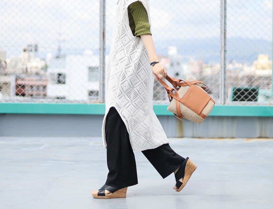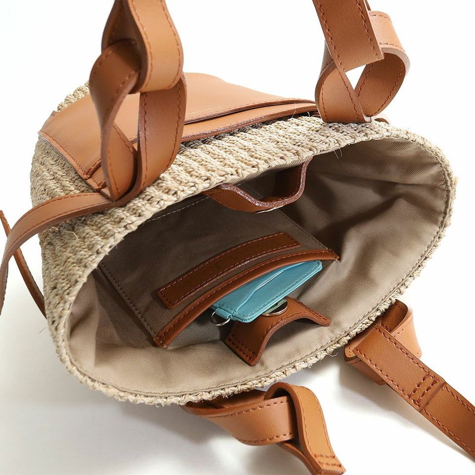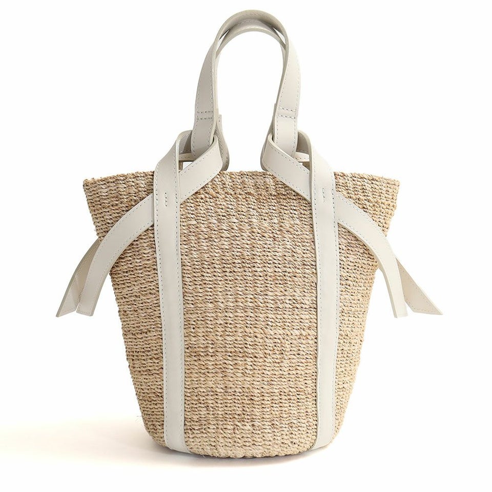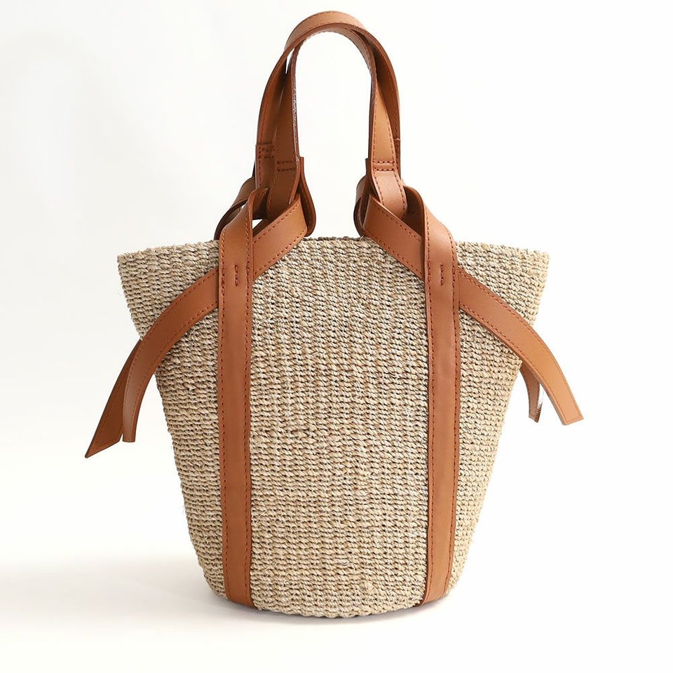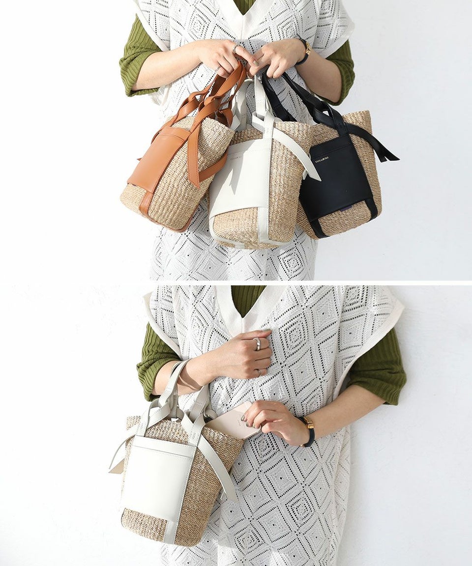 大人っぽい高級感を感じるリボン風レザーハンドルのバスケット