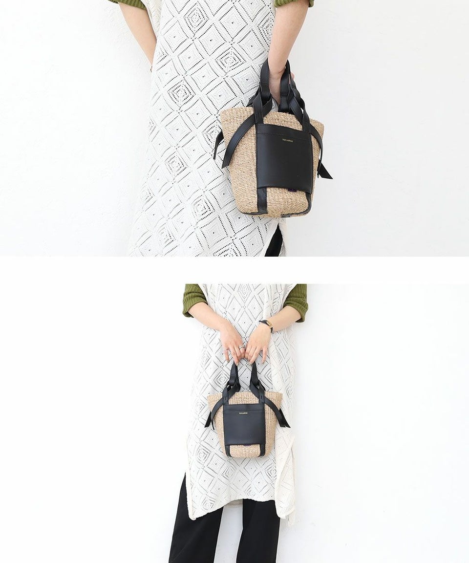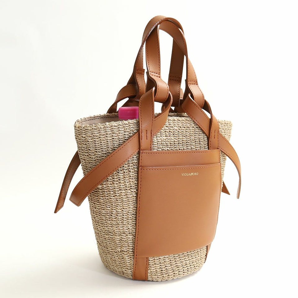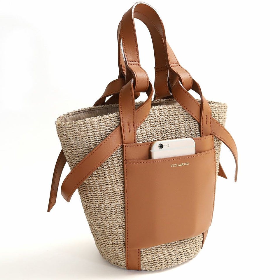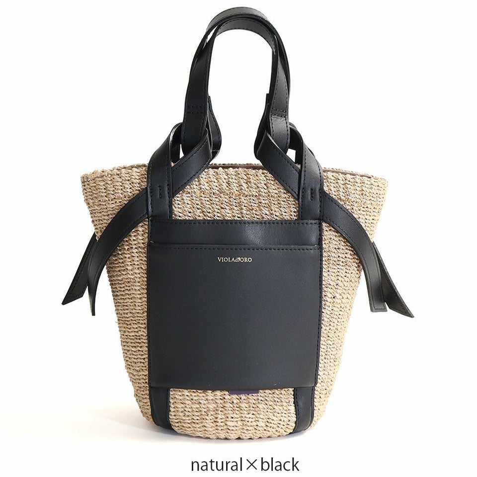 VIOLA d'ORO ヴィオラドーロ 正規販売店 舟形のアバカボディにレザーポケットとハンドルのデザインがポイントになったかごバッグ