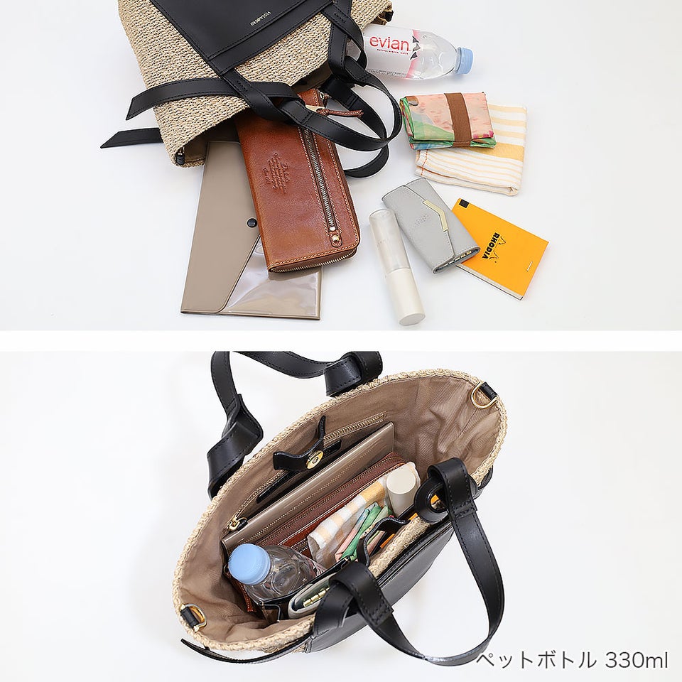 500mlのペットボトルや長財布など、身の回りのアイテムをしっかり収納できるサイズ感。コンパクトながら必要な荷物がきちんと収まるため、普段使いにちょうど良い容量です。お出かけや買い物など、日常のさまざまなシーンで活躍します。