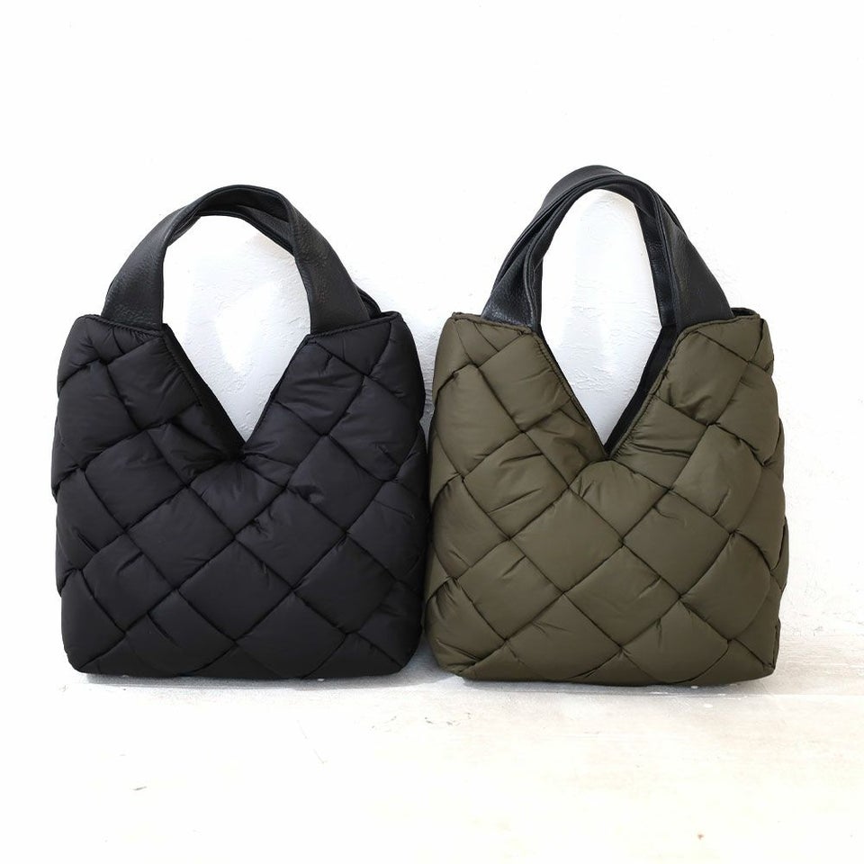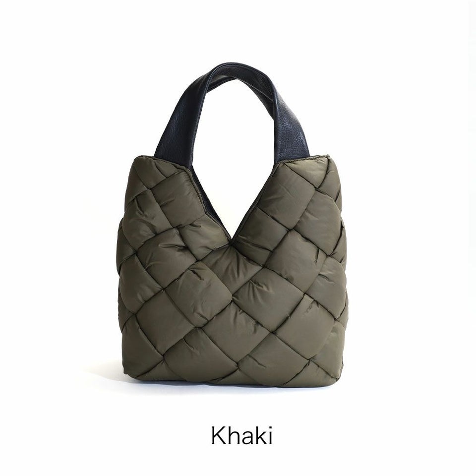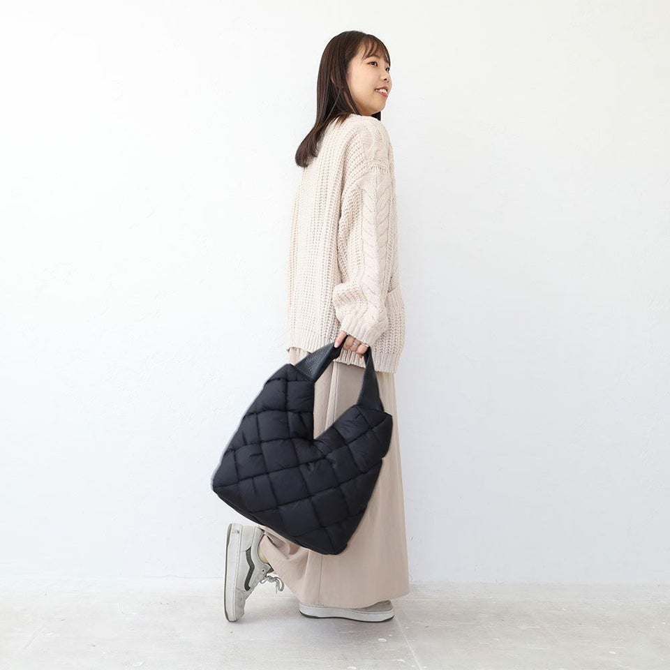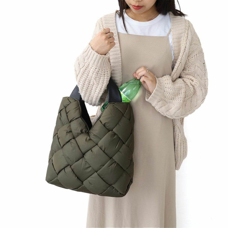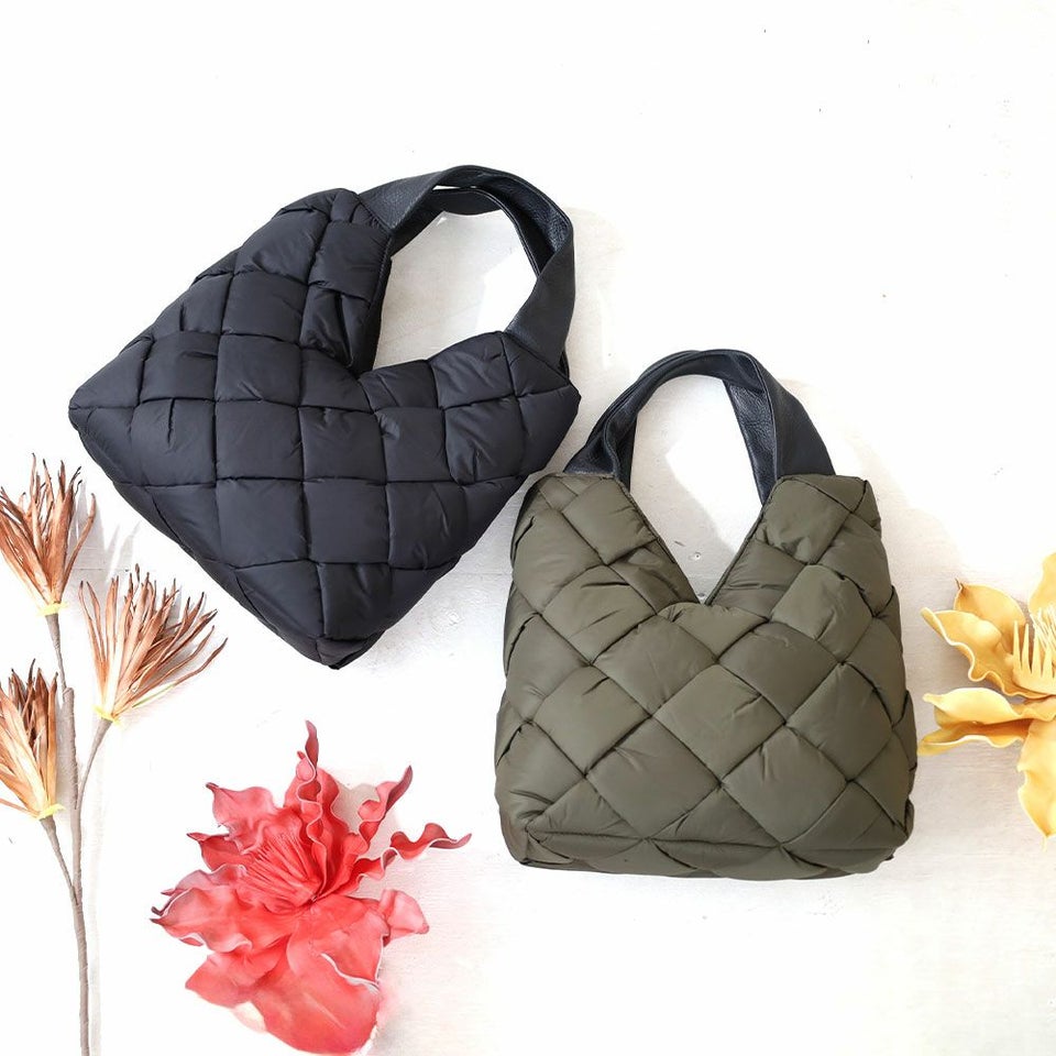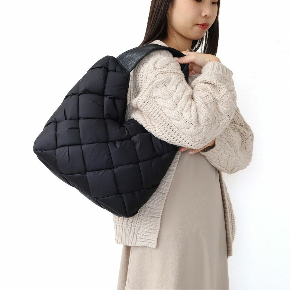 中綿入りナイロン素材で編まれたトートバッは 大人のカジュアルスタイルにぴったり B5サイズ対応 秋冬のお出かけに最適