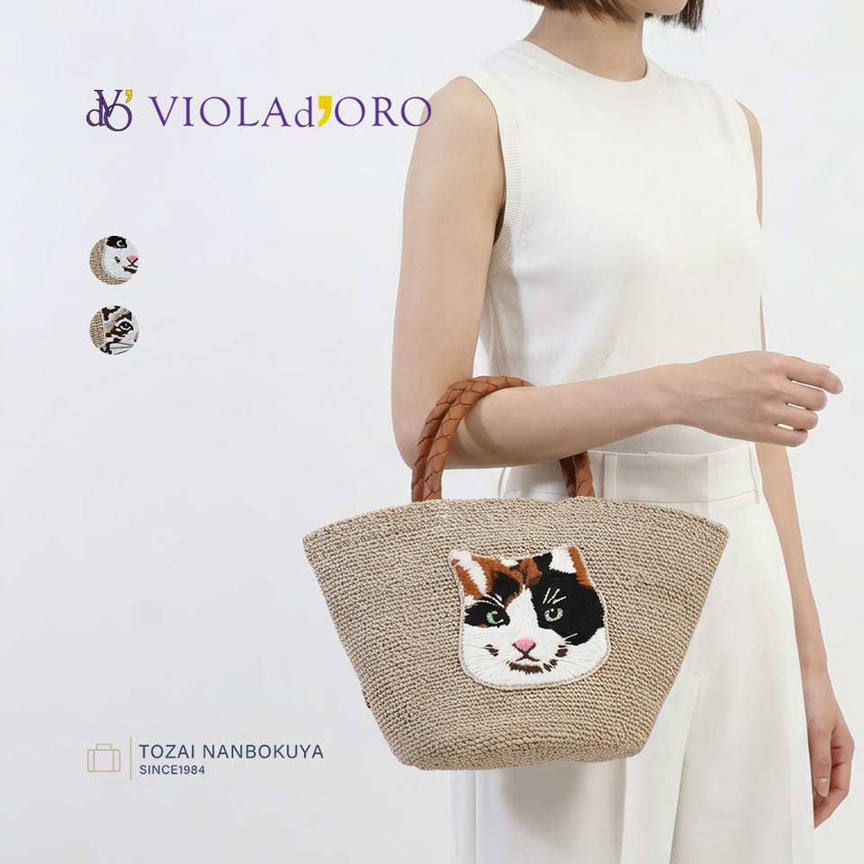 バッグの正面には三毛猫とトラ猫をモチーフにした刺繍ワッペンをデザイン。まるで猫と一緒にお出かけしているような気分を楽しめる、遊び心のあるデザインです。可愛らしさがありながらも繊細な刺繍で仕上げられているため、大人のスタイリングにも自然に馴染みます。ヴィオラドーロらしい上品さと遊び心を感じられる魅力的なポイントです。