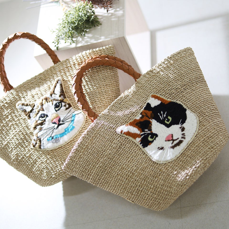 猫刺繍アバカトート
