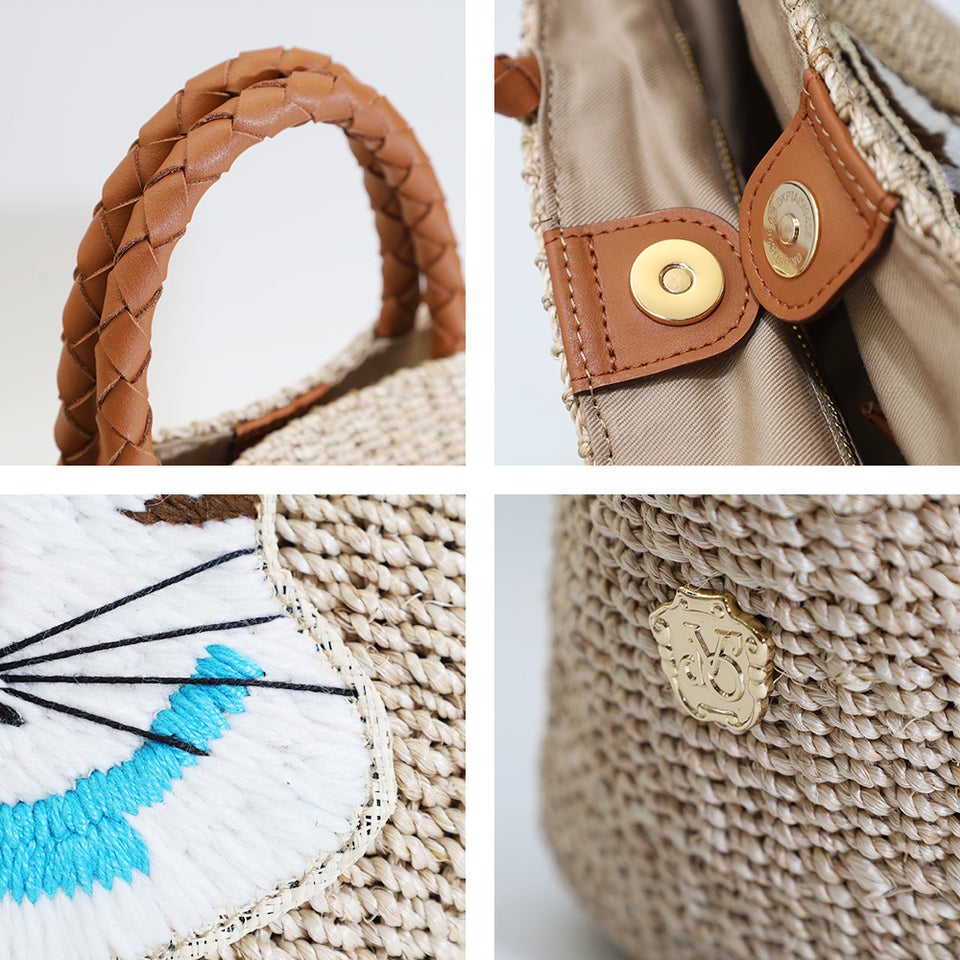 天然素材のアバカを使用することで軽量に仕上がり、長時間持っても負担になりにくいのが魅力。レザーハンドルは手に馴染みやすく、持ちやすさにも配慮されています。ナチュラルな風合いと上質な素材感が調和し、季節感のあるコーディネートをより魅力的に演出。デザイン性と実用性を兼ね備えた、毎日使いたくなるバッグです。
