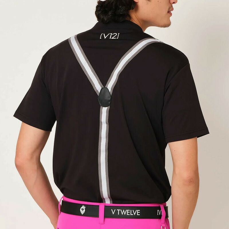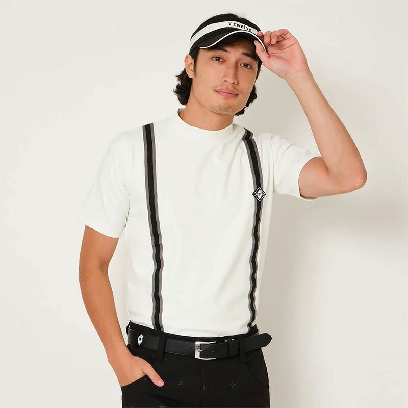 V12らしい、ポップで遊び心があるデザインのサスペンダー風モックネック
