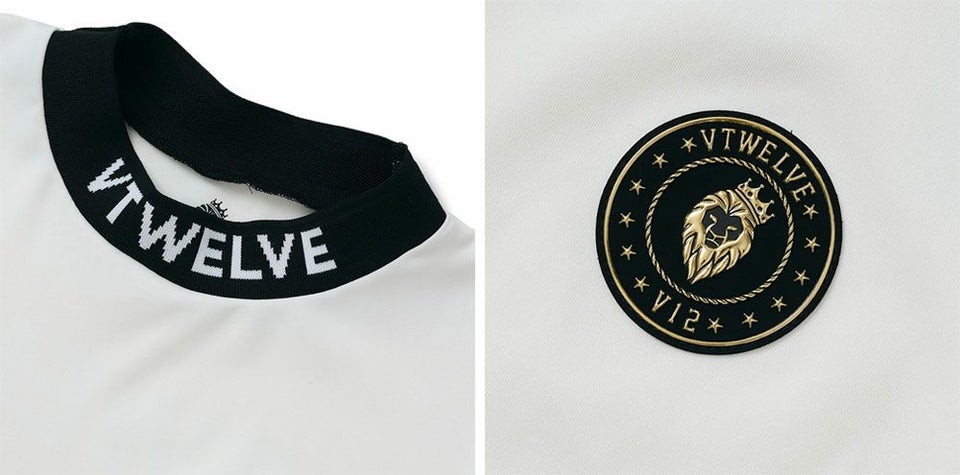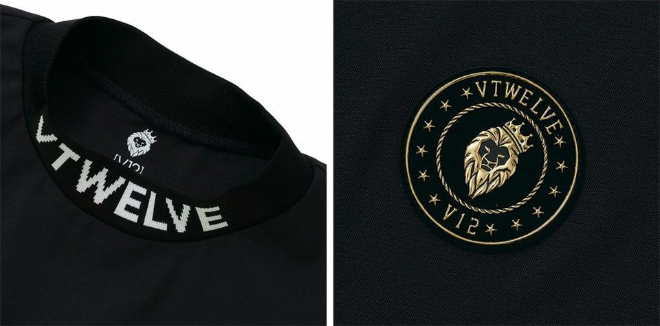 ネック部分にV12ロゴをジャガードで表現したモックネック。