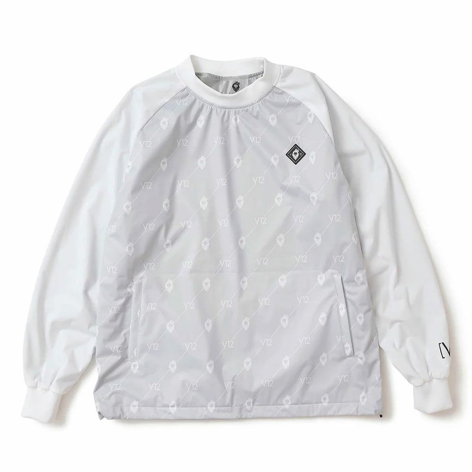 全面に柄の入った身頃とソリッドな切り替えのコントラストが特徴的。 総柄ほど派手になりすぎずコーディネートの主役にもってこいの一枚。 軽量かつ防風仕様なので、寒い日のゴルフでも快適にプレー可能。