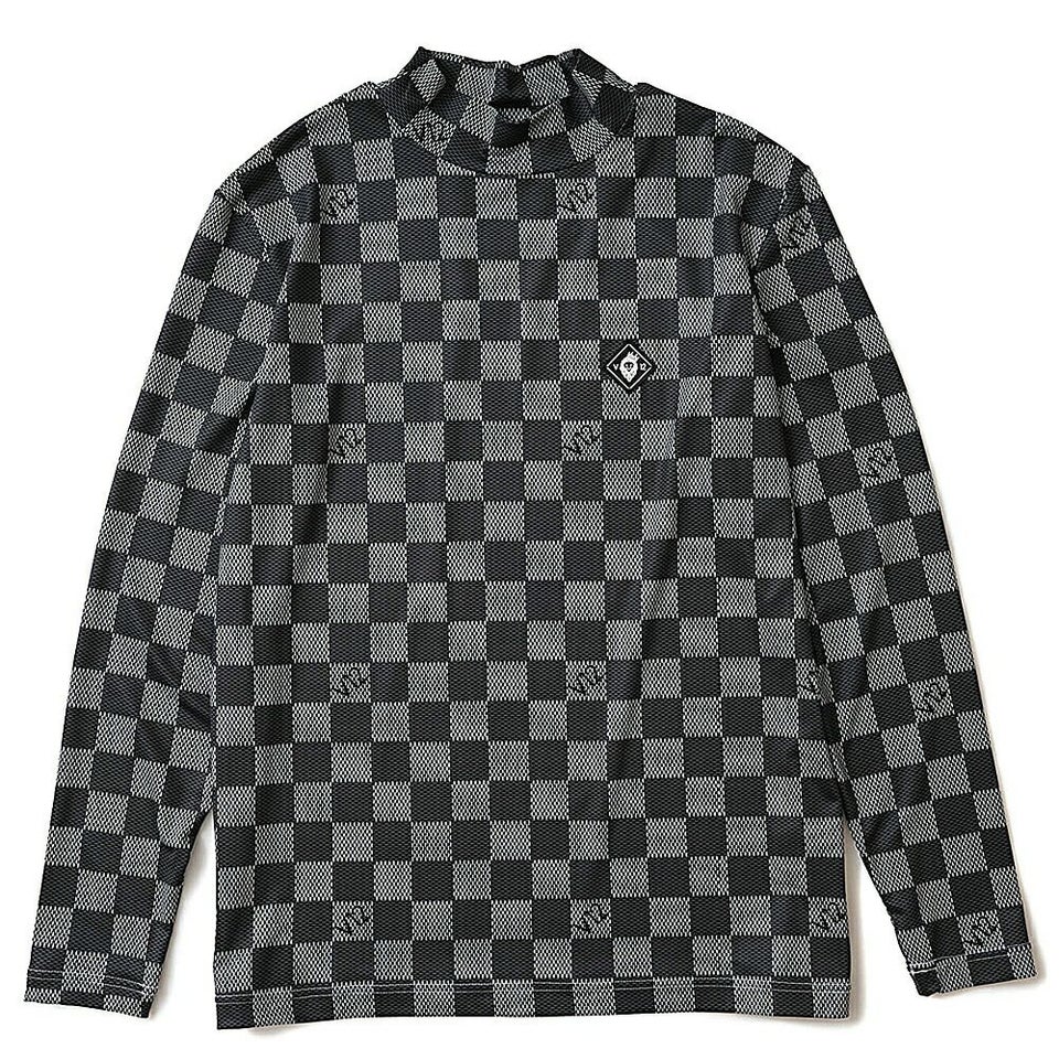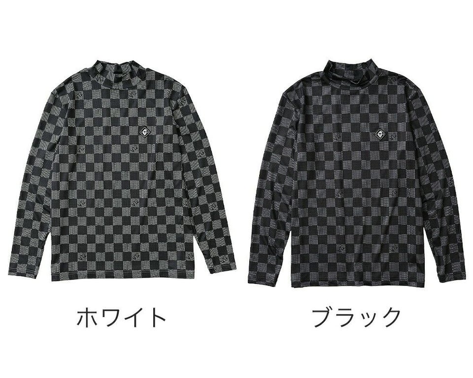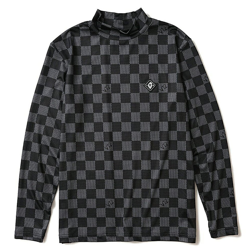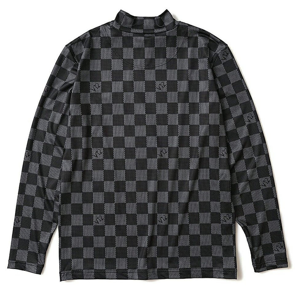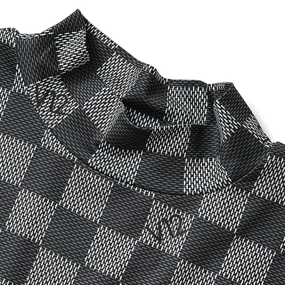 V12 柄入りのブロックチェックがラグジュアリーな印象のモックネック 送料無料