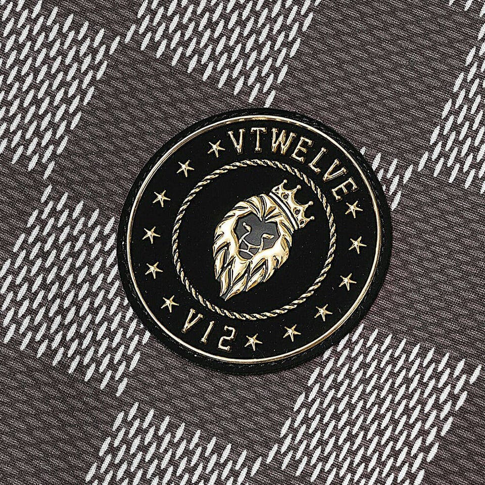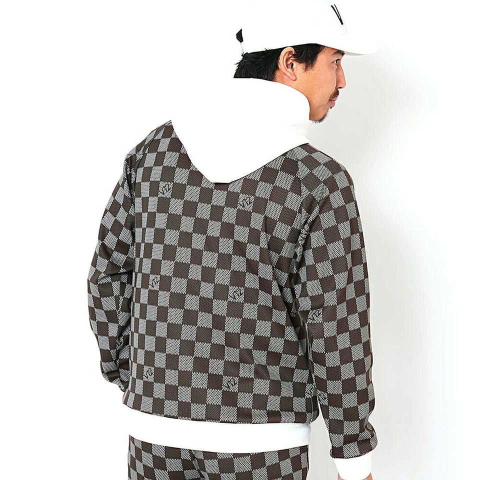 V12 柄入りのブロックチェックがラグジュアリーな印象のモックネック 送料無料