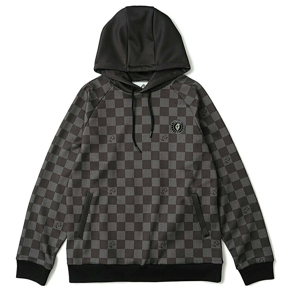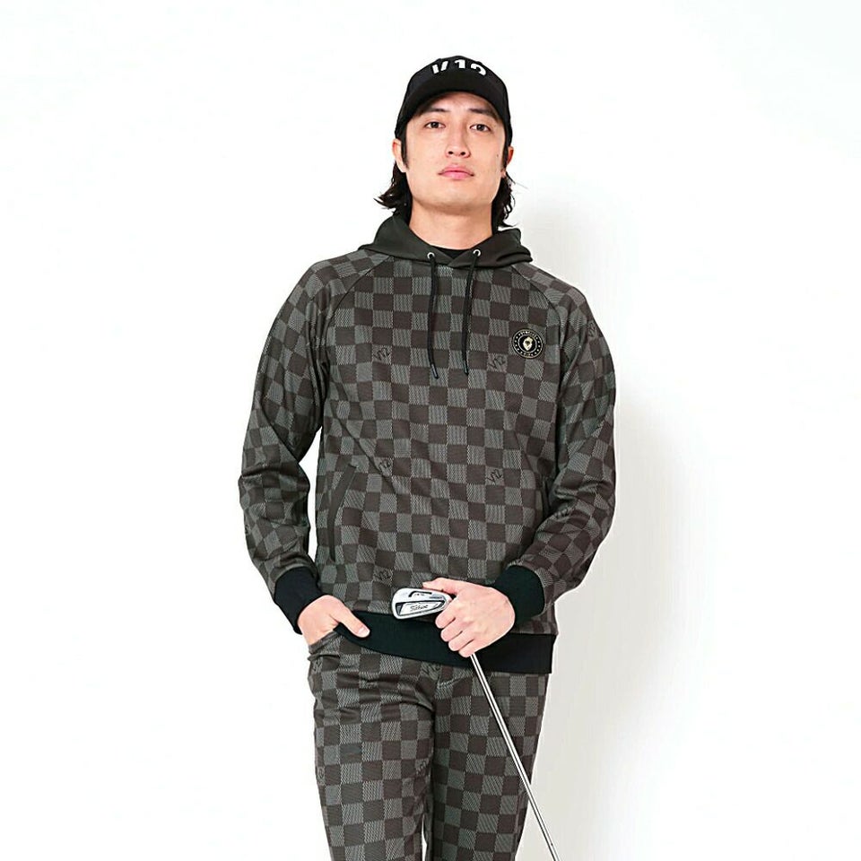 柄入りのブロックチェックがラグジュアリーな印象のパーカー。