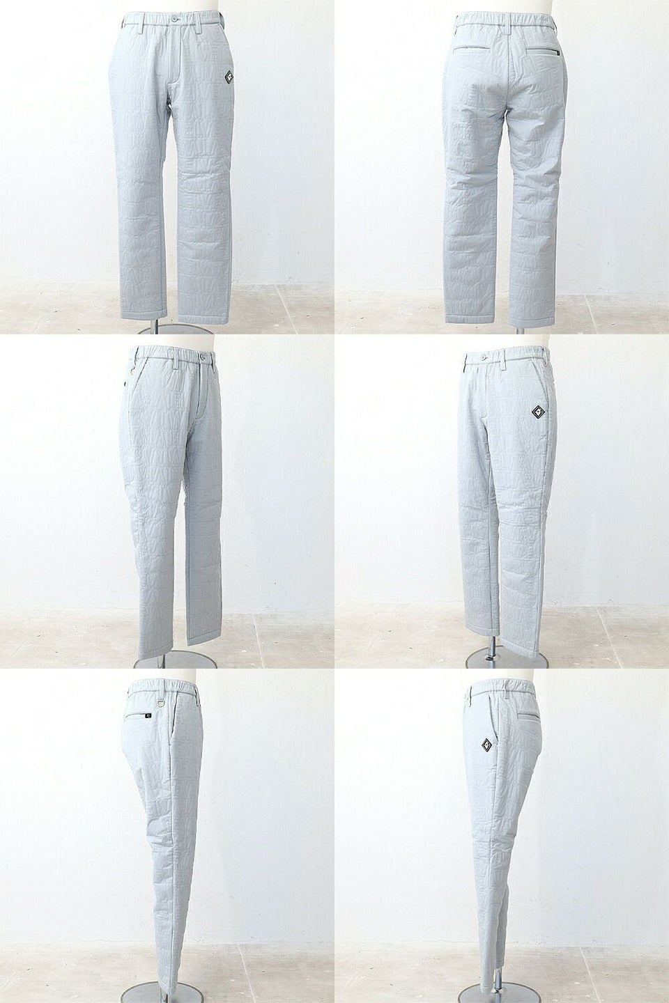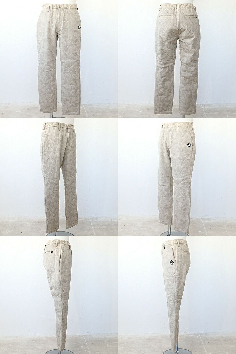 ブランドロゴをステッチで全面に施したロングパンツ。