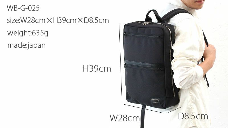 カジュアルリュックとビジネスリュックを分ける、大きな要因はどこか。 WONDER BAGGAGEのSLIM SACKはその名が示す通り、スリムなマチ幅をしています。 そのスリムな印象がフォーマルさに繋がり、ビジネスリュックの印象を確かなものにしています。