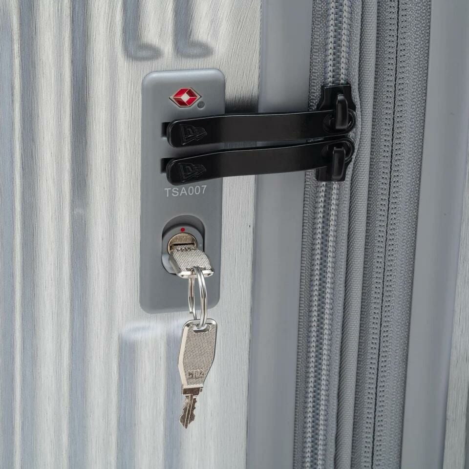 New Era Flagロゴがエンボスで入るオリジナルボディーを採用したキャリーケース。