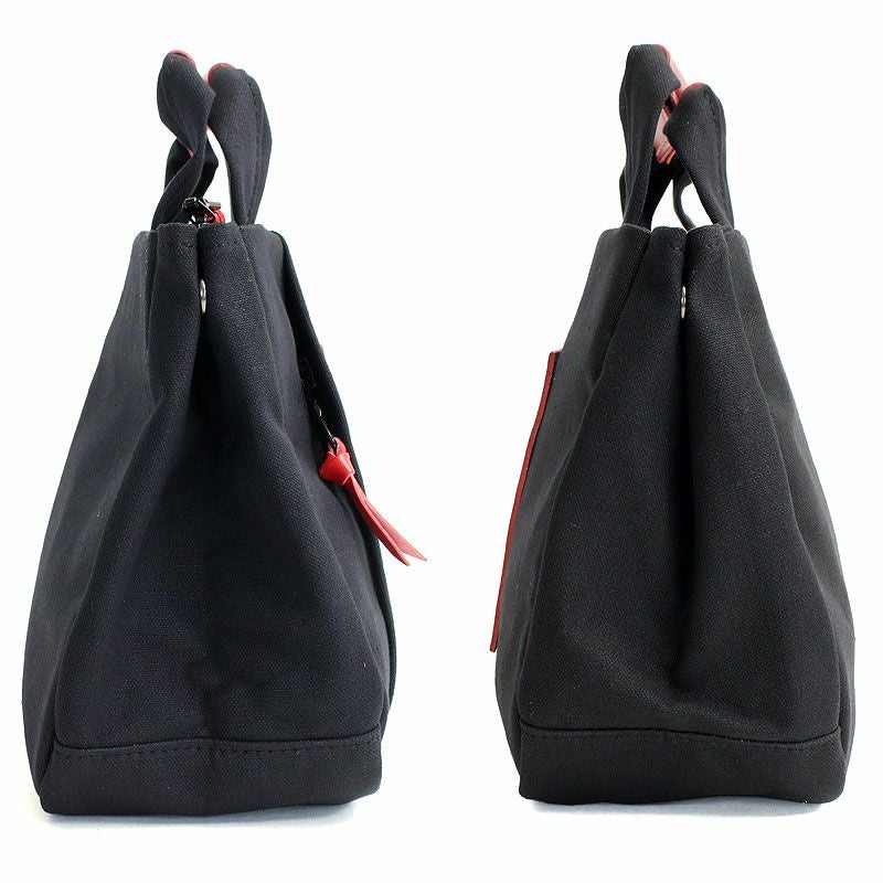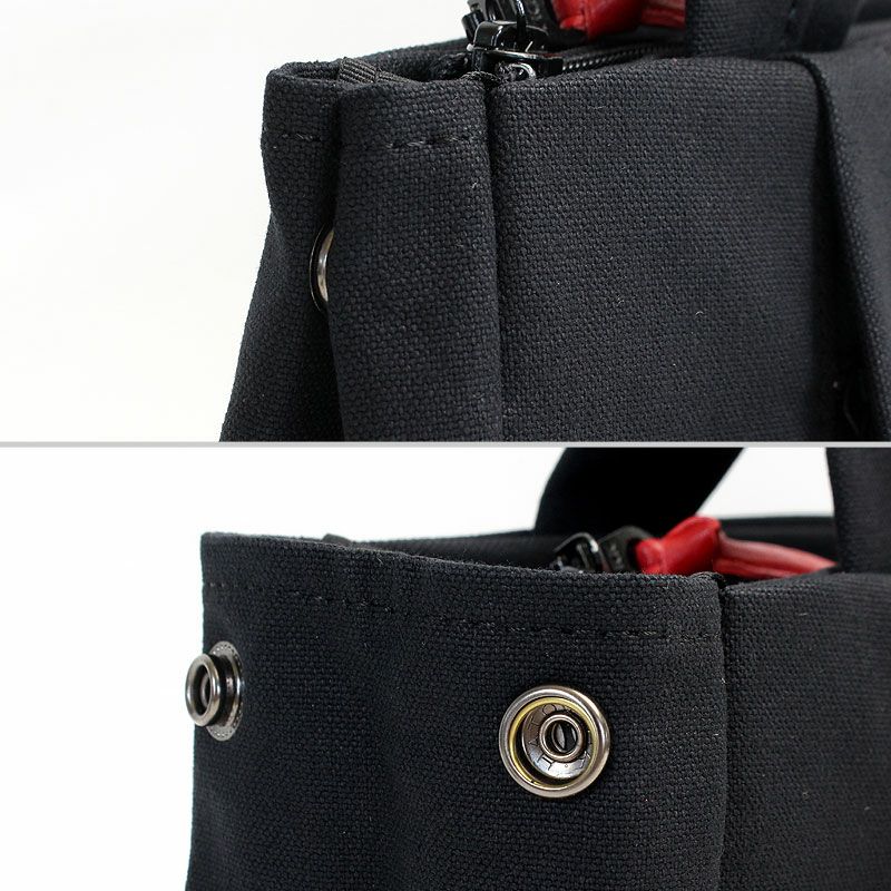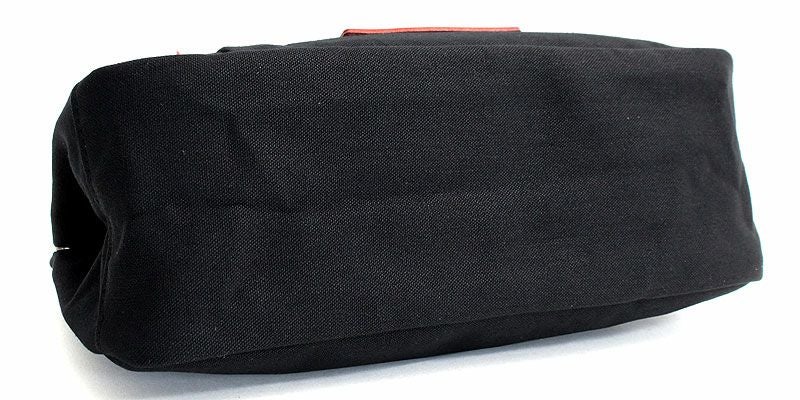 耐久性にも優れた10号高密度帆布をメインに使用し、フロントのロゴやハンドル部などにはヌメ革を使用。