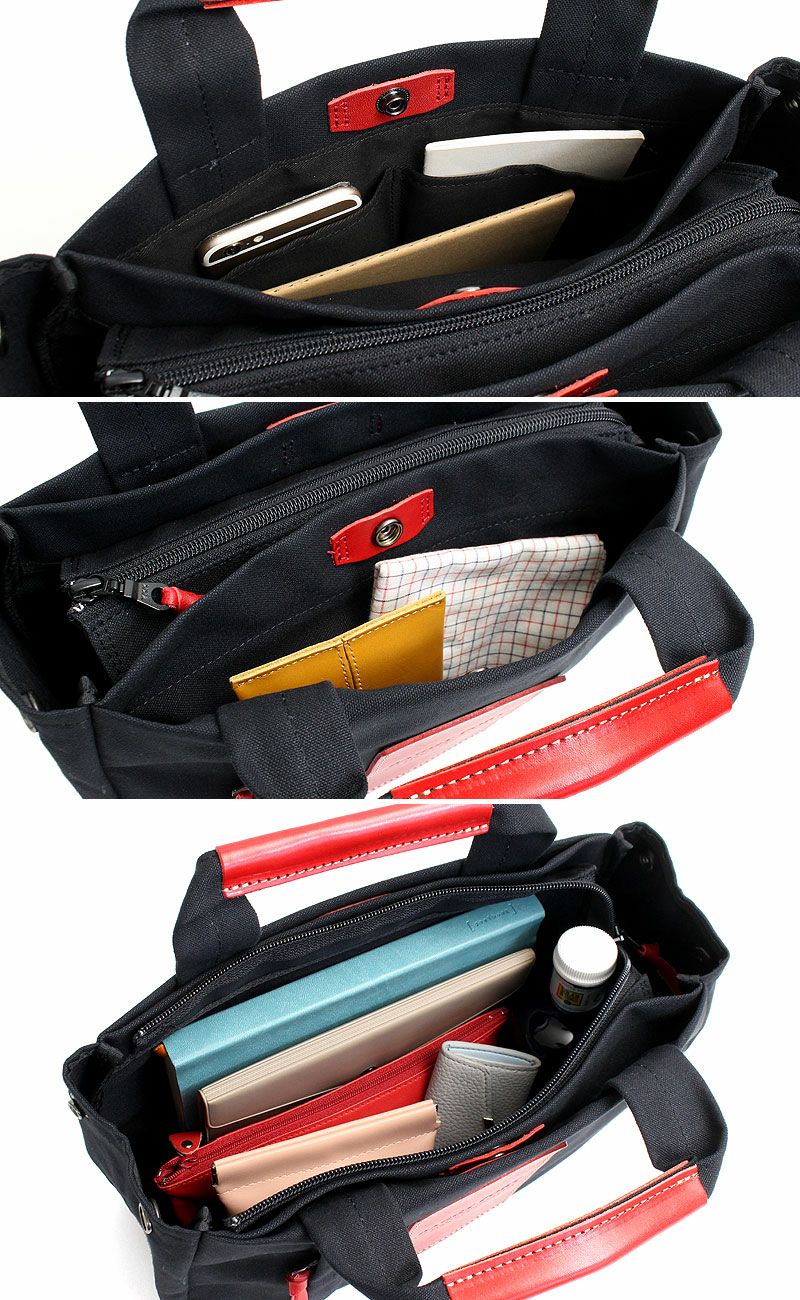 B5サイズ対応のミニトートバッグは、コンパクトながらもポケットを多数備えており整理しやすく、荷物の取り出しもスムーズに行えます。
