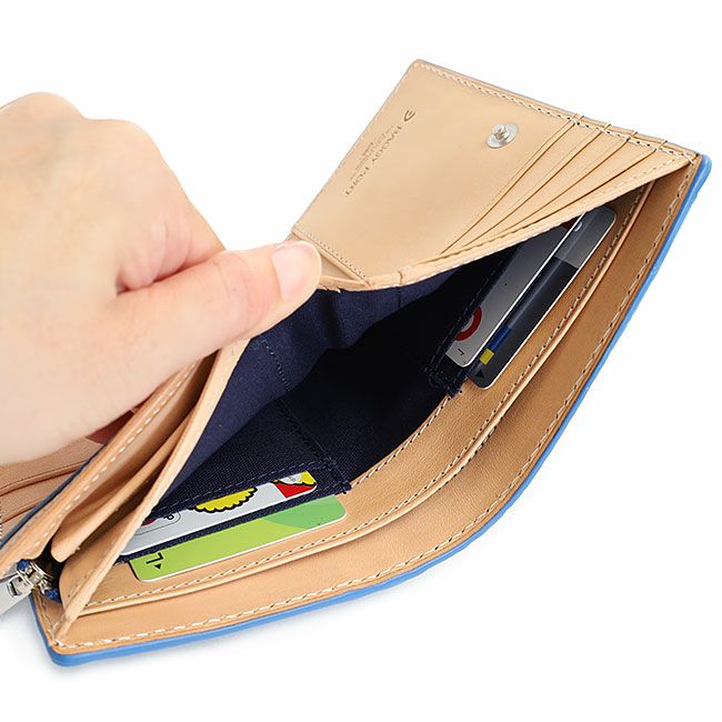 長財布並みの収納力と折り財布のコンパクトさを併せ持った『ハーフウォレット』は、使い勝手と、手に収まるサイズ感で、人気のデザインです。