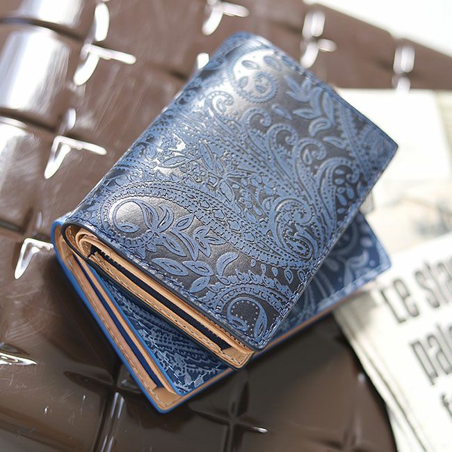 バギーポート 藍染め ペイズリー型押し 二つ折り財布 zys196