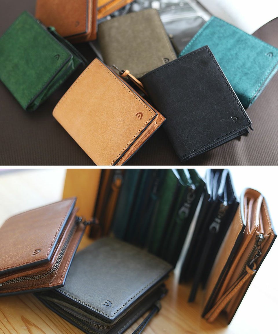 経年変化を楽しんでいただけるイタリアンレザーを使用したシンプルな二つ折り財布。