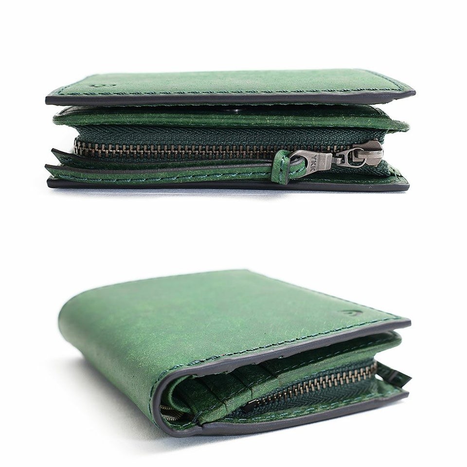 ザラっとした質感が特徴のイタリアンレザーを使用した二つ折り財布。