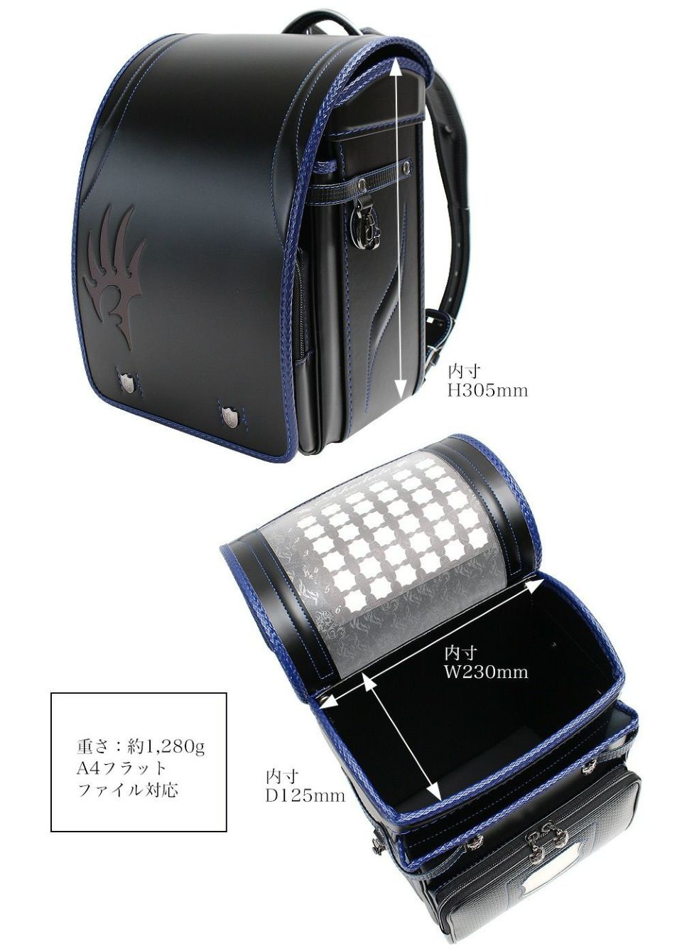 ■商品説明 かぶせ表の竜の翼のようなモチーフが格好いい男の子ランドセル“ドラグーン”。
