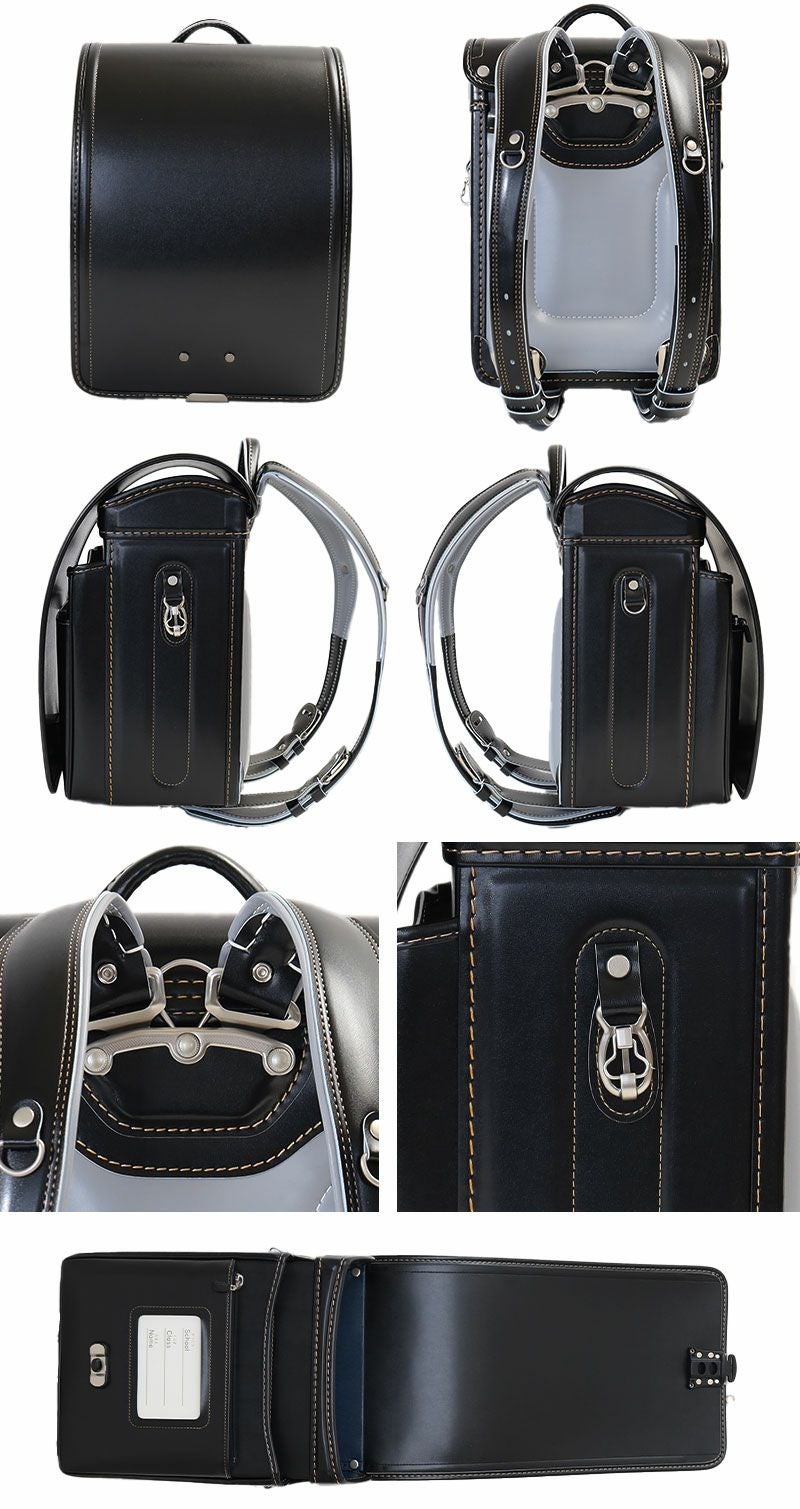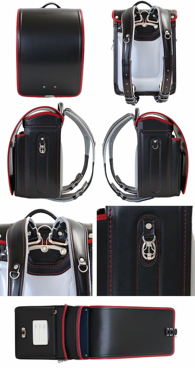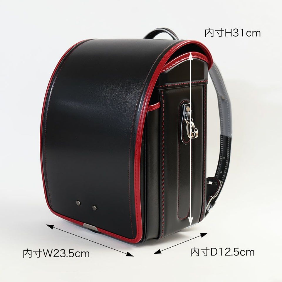 「しっかりくん」と「2重補強材」のダブルの補強が施されており、しっかりくんはランドセルが最も傷みやすい大マチ上部に装備され、形状補正樹脂と中央部の鉄芯が内蔵されています。