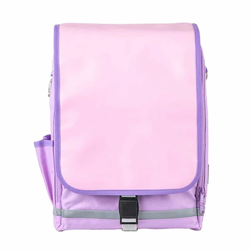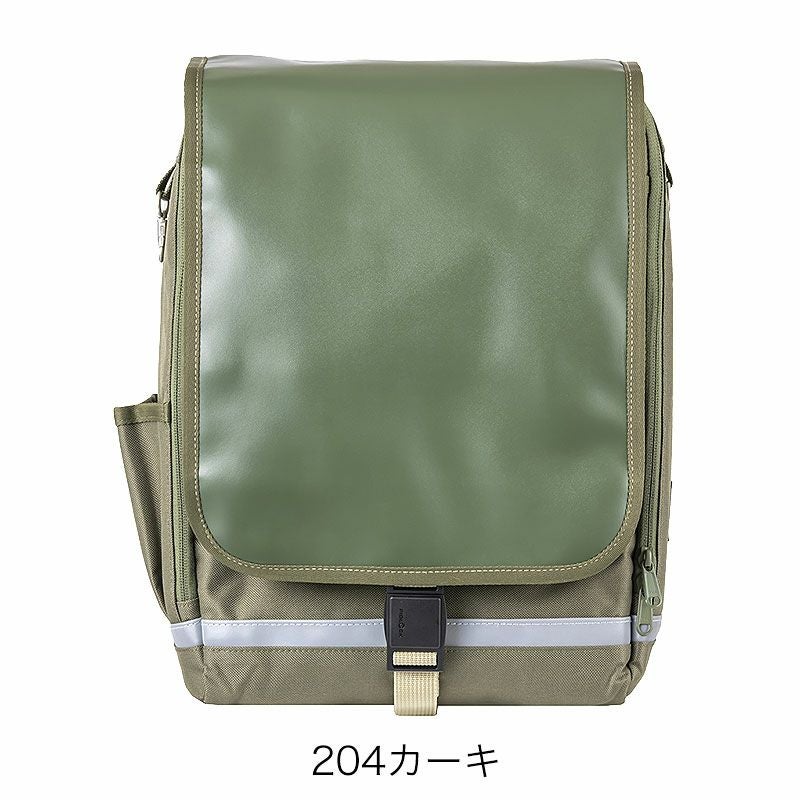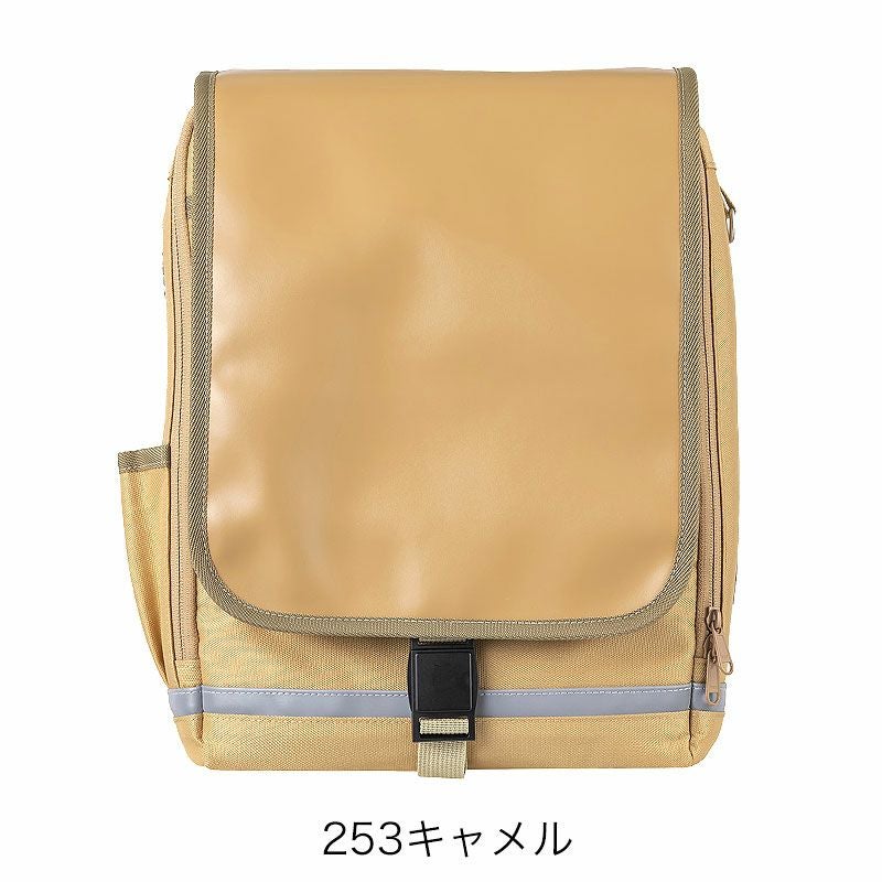 かぶせフタの部分を合皮にし、撥水加工を追加。革製のランドセルと見た目の違和感がないデザインに仕上げています。また3Dパターンで形成された肩ベルトを改良し、より体に密着する構造になりました。