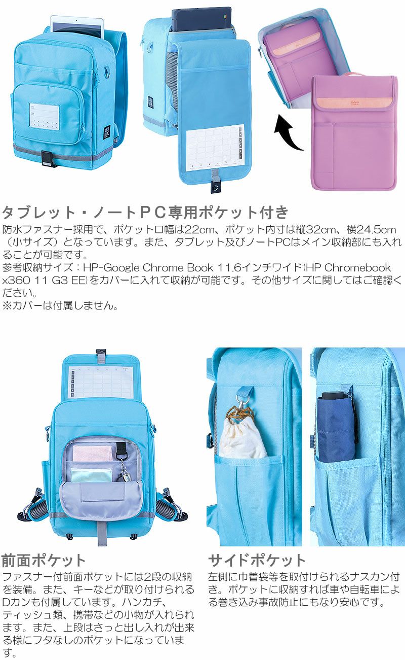 (1) タブレット・ノートPCが収納できる独立ポケットを配置