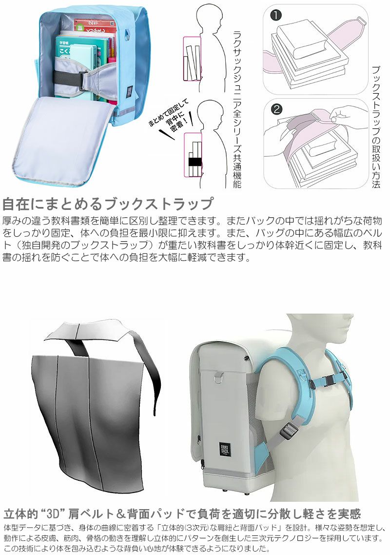 ラクサックジュニアプラスは、従来のラクサックより容量が増し、新たな機能も加わりました。