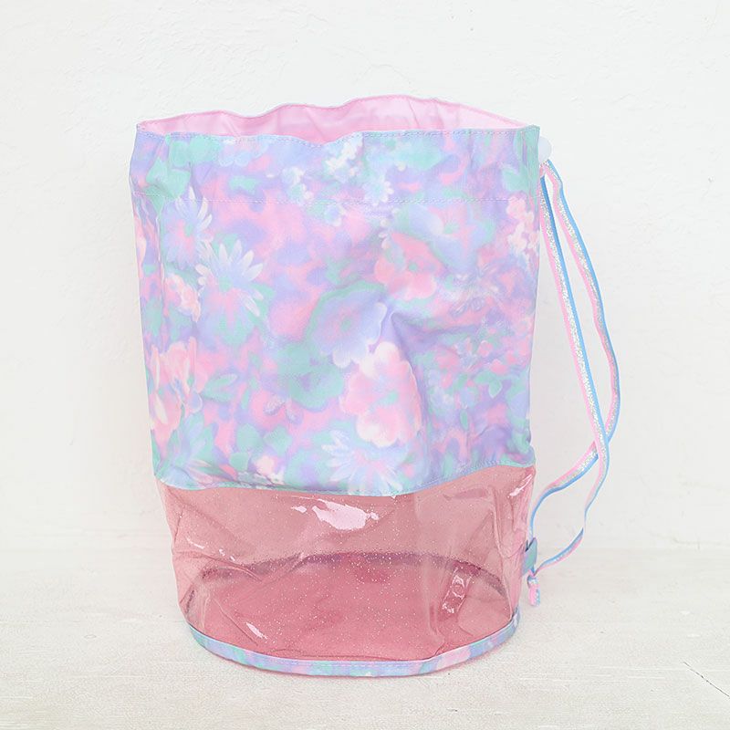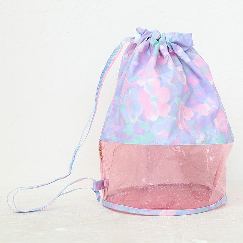 ライラックノスタルジックフラワー柄のプールバッグ。