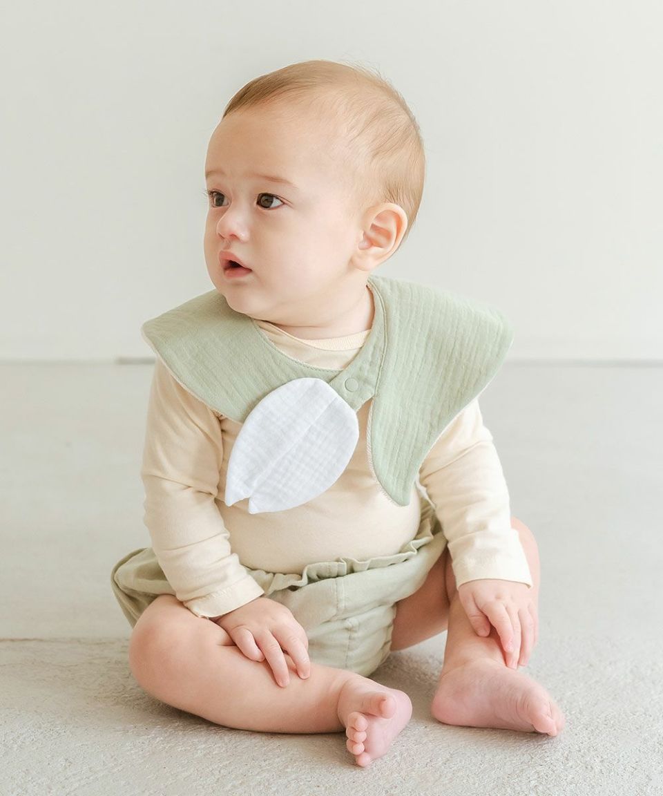 赤ちゃんの肌に優しい綿100%のガーゼ素材、裏面は吸水性抜群のパイル生地を採用しています。