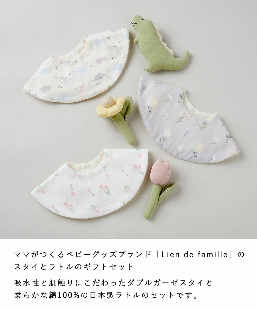 ラッピング無料 人気ブランド「Lien de famille」の日本製スタイとラトルのギフトセット おしゃれボックス入りで贈り物に最適